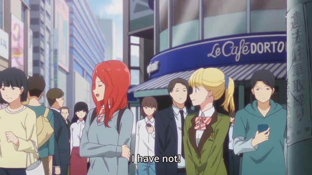 — Naturally, he wants to drag everyone down to the event. I only say naturally because this is what we’d expect from anime in general. Why wouldn’t they be there, right? But if you really think about it, why would they be there? They can’t even go inside to see her. All they get to do is stand outside and wait for Hajime to do his thing. What a waste of time for all of them. You could argue that they’re there for moral support, but c’mon… the fact that Hajime needs moral support in order to greet his idol is kinda pathetic.