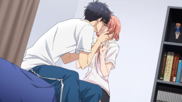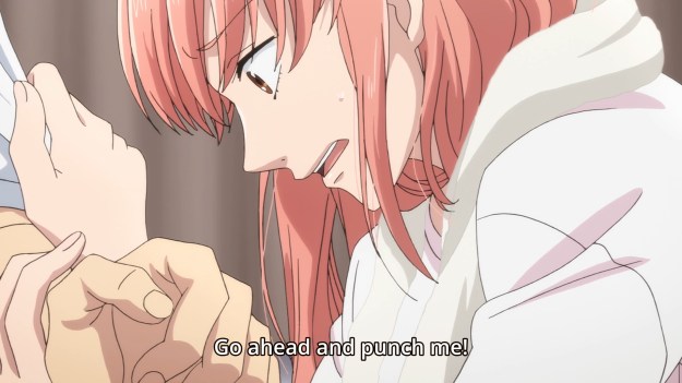 The girl starts to feel bad; she starts to feel as though their relationship isn’t entirely fair to him, so she wants him to be a little more open about his feelings. She even jokingly encourages him to punch her if she’s being terrible, so he takes the opportunity to lean in and kiss her instead. There. After nearly 20 minutes of nothing, we finally get a bit of sappy romance between these two characters. It’s maddening.