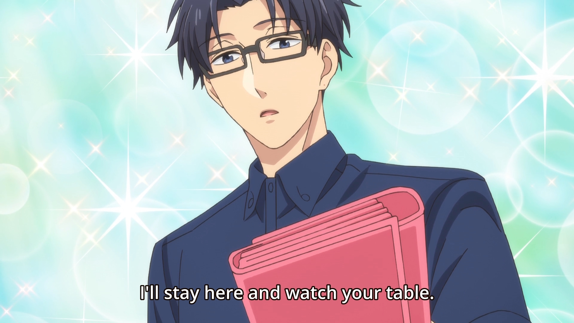 — But he’s ever so patient. When she realizes that she’s about to miss out on buying some important doujin, he volunteers to take over for her. On her way back, she overhears some girls marveling over her table, but it doesn’t really get Narumi mad or jealous. She just rushes back to Hirotaka ’cause she doesn’t want him to be inconvenienced (to be fair, he did get harassed). Again, I’m just failing to feel any sort of romantic connection between these two characters. He likes her, but he’s too placid to show it… and I’m not sure if she likes him at all.
