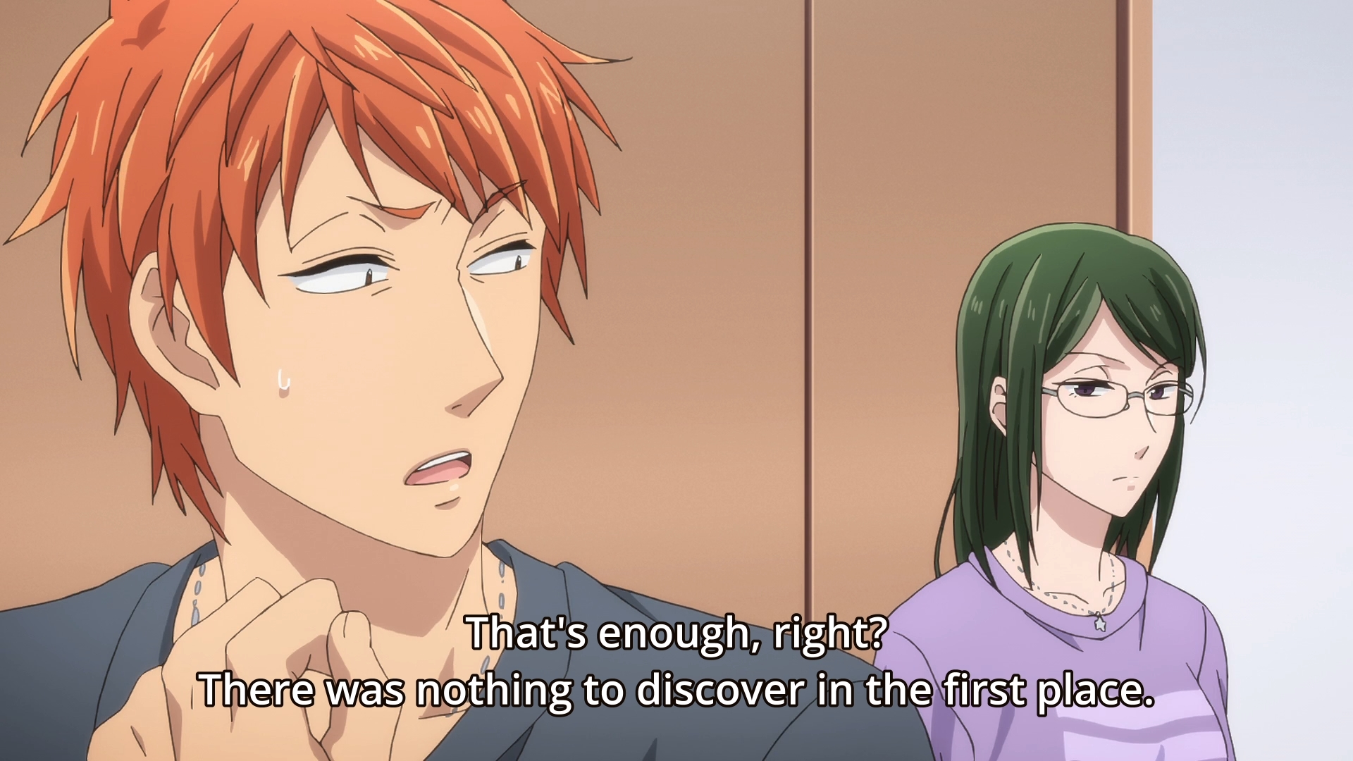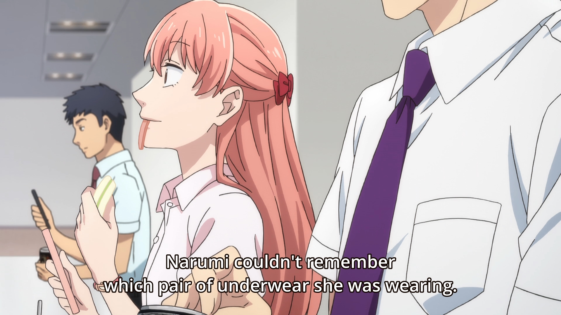 — During the search, Narumi notices that Taro and Hanako are wearing couples necklaces. Hell, those two started dating offscreen, and they’re already made more progress than our main couple.