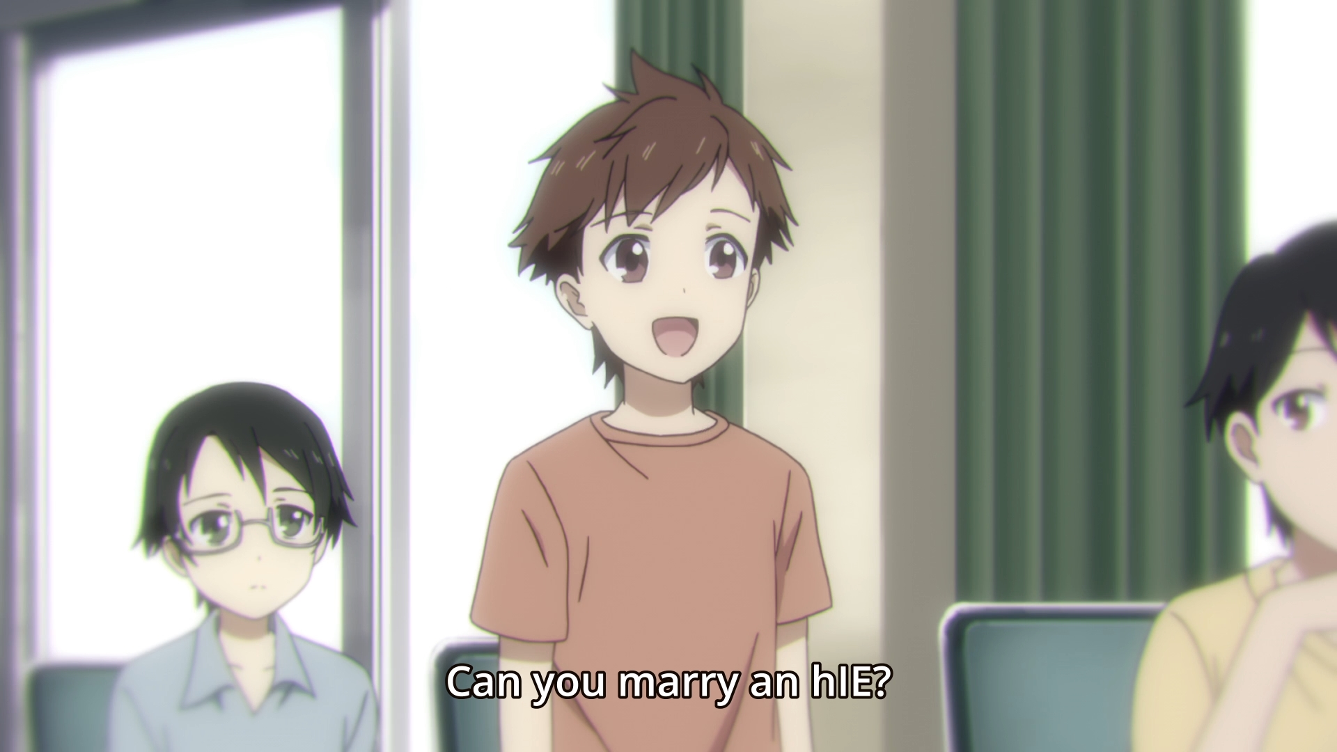 — Back in the present, Kengo maintains that his friend Arato is an idiot: “How can you marry something that can’t have feelings?” Yo, lots of people marry people without feelings.