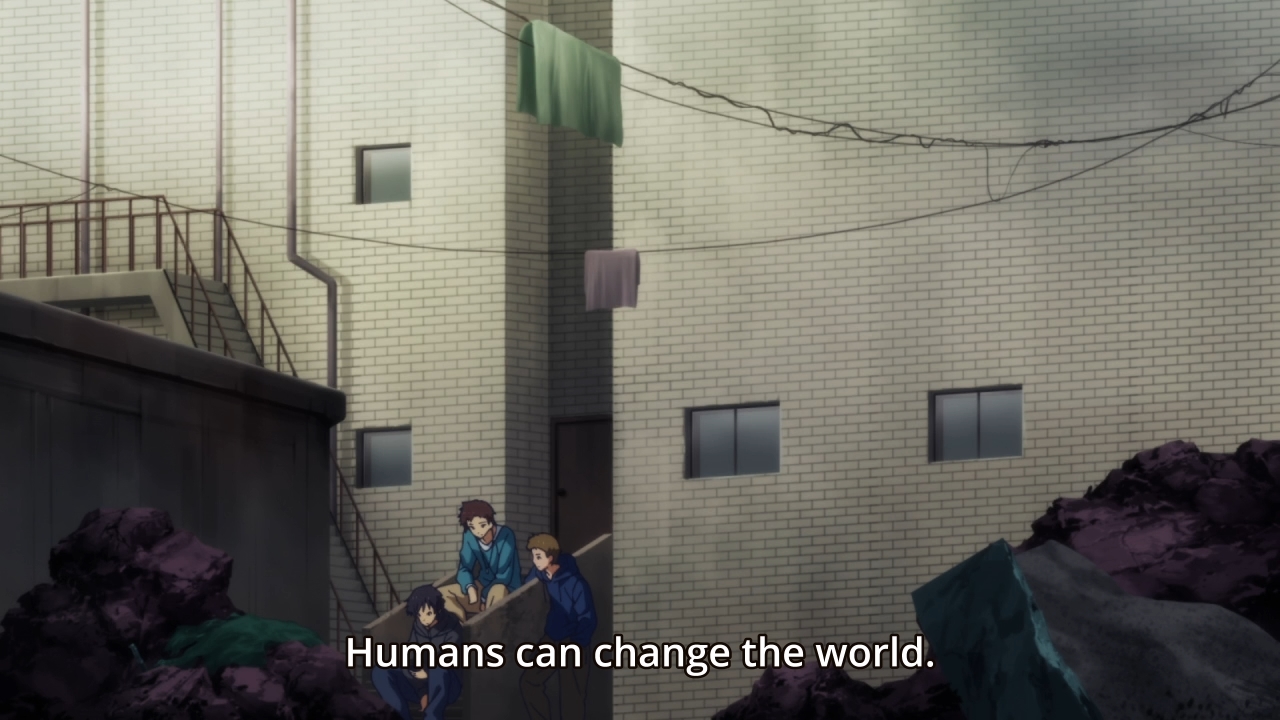 But there’s a bigger problem than the one I just mentioned. And this problem is actually the show’s fault. We haven’t really gotten much information about the antibody network. Hell, we haven’t really gotten much information about this universe at all. Beatless has done a terrible job at world-building. If you just watch the previous 15 episodes (yeah, we may as well throw the recaps in there), you wouldn’t be wrong if you thought that our characters exist in a pretty swanky future! Nevertheless, Kouka spends a lot of time in this week’s episode talking about the disenfranchised. All of a sudden, we get a montage full of the supposedly disenfranchised from all across the world! These people are why the antibody network exists. These people are the ones who are truly hurt by automation. These people are not living in a futuristic paradise like Arato, Ryo and Kengo! Like what am I looking at here? Are these human or hIE prostitutes? And now we have Thai girls huddling in a corner, watching Kouka stir shit up? Up until now, we haven’t gotten any sort of information about any of these people! We haven’t learned a lick about them! Beatless hasn’t given us any context to understand one of the major conflicts within its own story! What. The. Fuck.