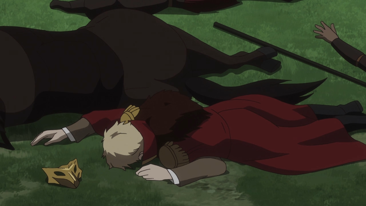 — Milza’s army is running circles around the good guys. This is hilarious. Of course, things will get serious once he has to face off against Theo, but it’s funny how a bunch of nobodies will have to die until that happens. Lassic finally joins the battle because he won’t let the Black Prince get to Theo, but I don’t understand why they’re not leveraging their superior numbers all at once to just crush Milza right there and then.