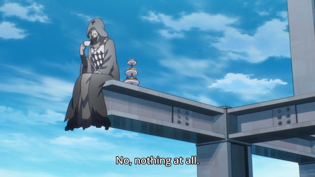 — Ooh, it’s the gathering of the baddies. And like most anime baddies, they’re content to sit around and talk idle nonsense. Should we stop the good guys?! Eeeeeh, let’s just chill and let them power up, gather allies, so on and so forth.