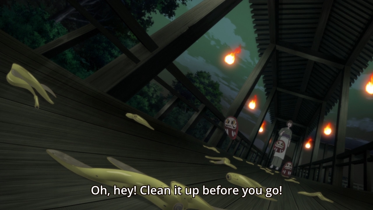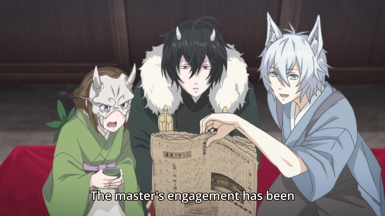 — Ayakashi do not age at the same rate as humans, so Sasuke is actually 80. And of course, he and Shiro used to be best buddies. The show continues to treat Shiro like a superstar even though the more I hear about him, the worse he seems to come across. He sold his granddaughter, abandoned two ayakashi after taking them in, and now we hear that he used to peep on women as they bathed. This is a two-cour series, so I’m sure the list will grow steadily.