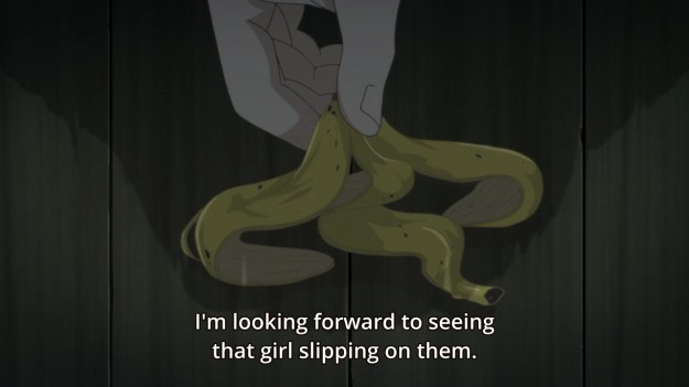 — The inn’s chefs have decided to litter the place with banana peels in the hopes that the girl will slip and fall on them. Yo, this ain’t Mario Kart.