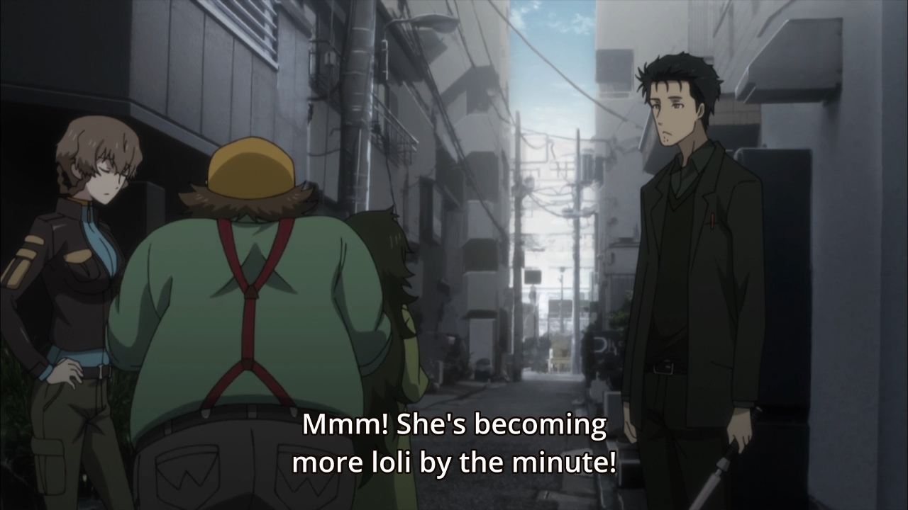 — Daru: “Did we trigger the flag for Miss Hiyajo to be inducted into the lab as our token loli character?” You laugh, but she’s already this show’s token loli character. Plus, is he really gonna gush on and on about lolis in front of his damn daughter?