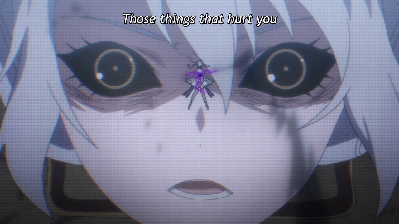 — Oh hey, Mu can tell that everyone’s in pain. But then Thorn tells her that this is all for the best, so the girl just goes back to her stupid singing. Look, she’s an idiot! Unfortunately, she sits at the center of this entire story, and it’s apparently Ritsu’s job to eventually save her at some point. That’s so lame.