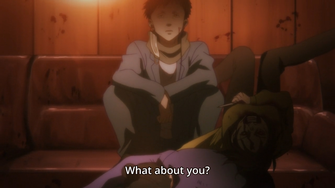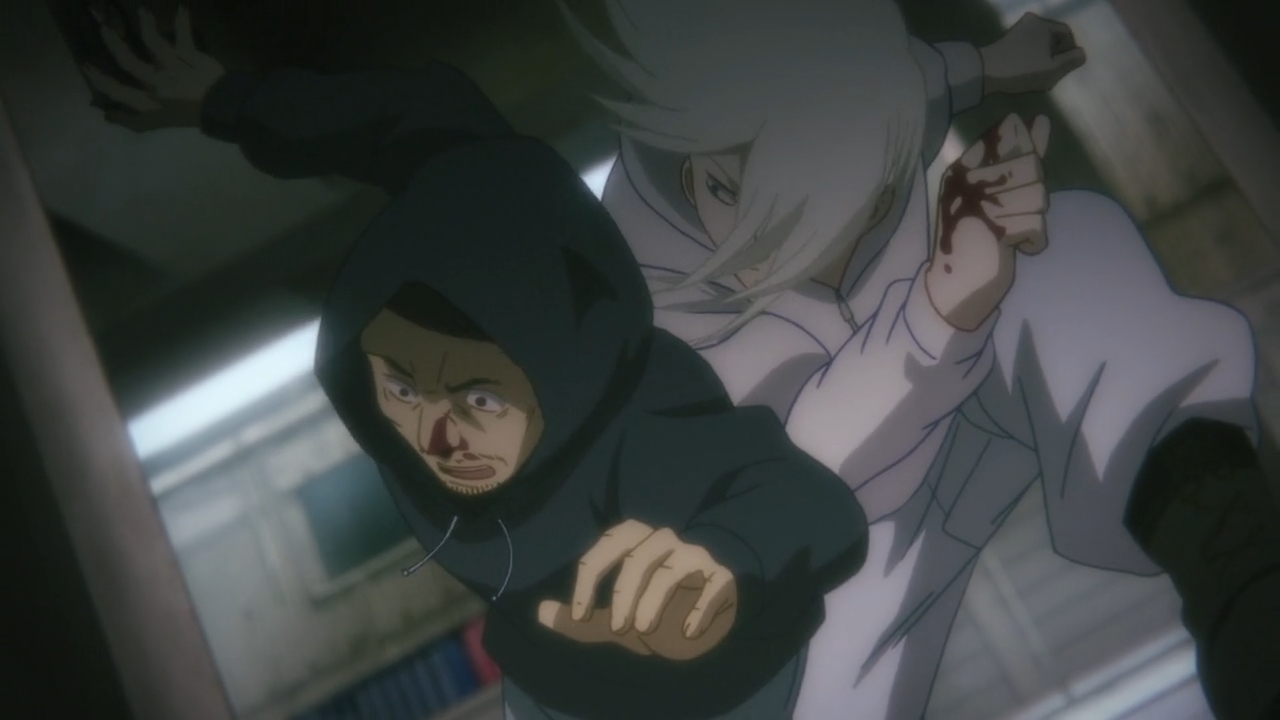 — We cut to Makimura, and he’s apparently murdered the people that Oryo works with. Well, we have at least one mole identified. He also gets mad at Zero Eleven for giving him bad info, but unbeknownst to him, Zero Nine has somehow overpowered his attacker and would-be torturer.
