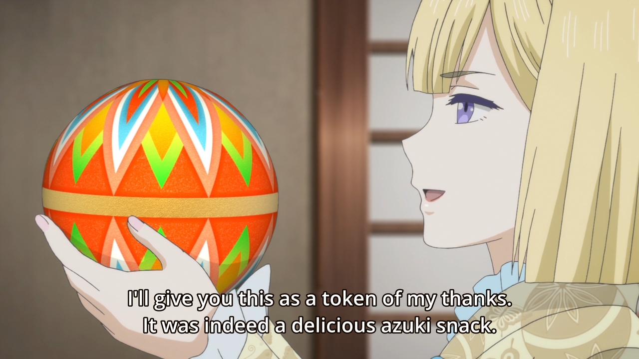 –So the girl likes it, gives Aoi the colorful ball, then disappears. When Ginji returns, he suggests that the girl was a Zashiki-warashi. Basically, Aoi just got some good fortune. Maybe I’d appreciate this show more if I knew anything about Japanese folklore, but alas…