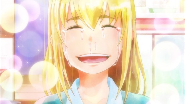 Akira wants to know what drove Yukihira to try so hard, and our hero claims it was all for his buddy. The former then tries his rival’s dish, and of course, he has a food orgasm over it. In fact, he feels as though he’s been visited by God. That’s a bit much, don’t you think? But it’s not all fun and games, because Jun quickly shows up to slap the guy across the face. Then she tearfully confesses that she doesn’t care about her research if it meant depriving Akira of his joy in cooking. Aw… too bad I don’t really care about either of these two characters.
