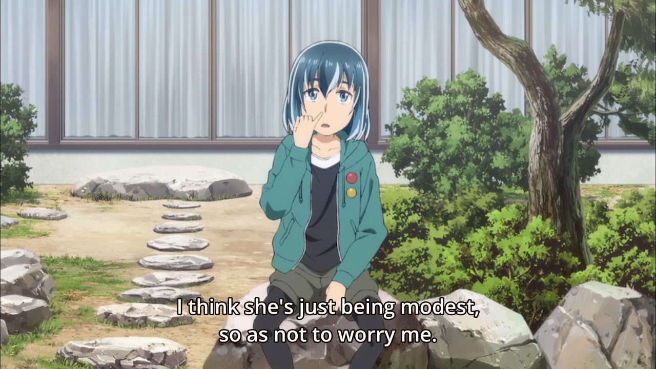The second half, however, delves right back into Anzu’s melodrama. Thankfully, a family has finally decided to take her in, so maybe Hinamatsuri will stop trying to jerk my tears. It’s not that I don’t like emotions in my comedy. I just don’t like the way this show does it. If you wanna tug at my heart strings, do it gracefully. Have it interwoven into the comedy. What Hinamatsuri does instead is give you huge chunks of nothing but silly comedy, followed by a significant chunk of dead seriousness involving Anzu and Anzu alone. It’s such a huge shift in tone that I end up feeling something akin to emotional whiplash. Plus, if I gotta be honest, I have a hard time believing that those homeless men are such gentle souls. But like I said, now that the girl has been more or less adopted, maybe we can move on from all the sad Anzu moments. Maybe she can even start attending school with Hina and get into hijinks with Hitomi.