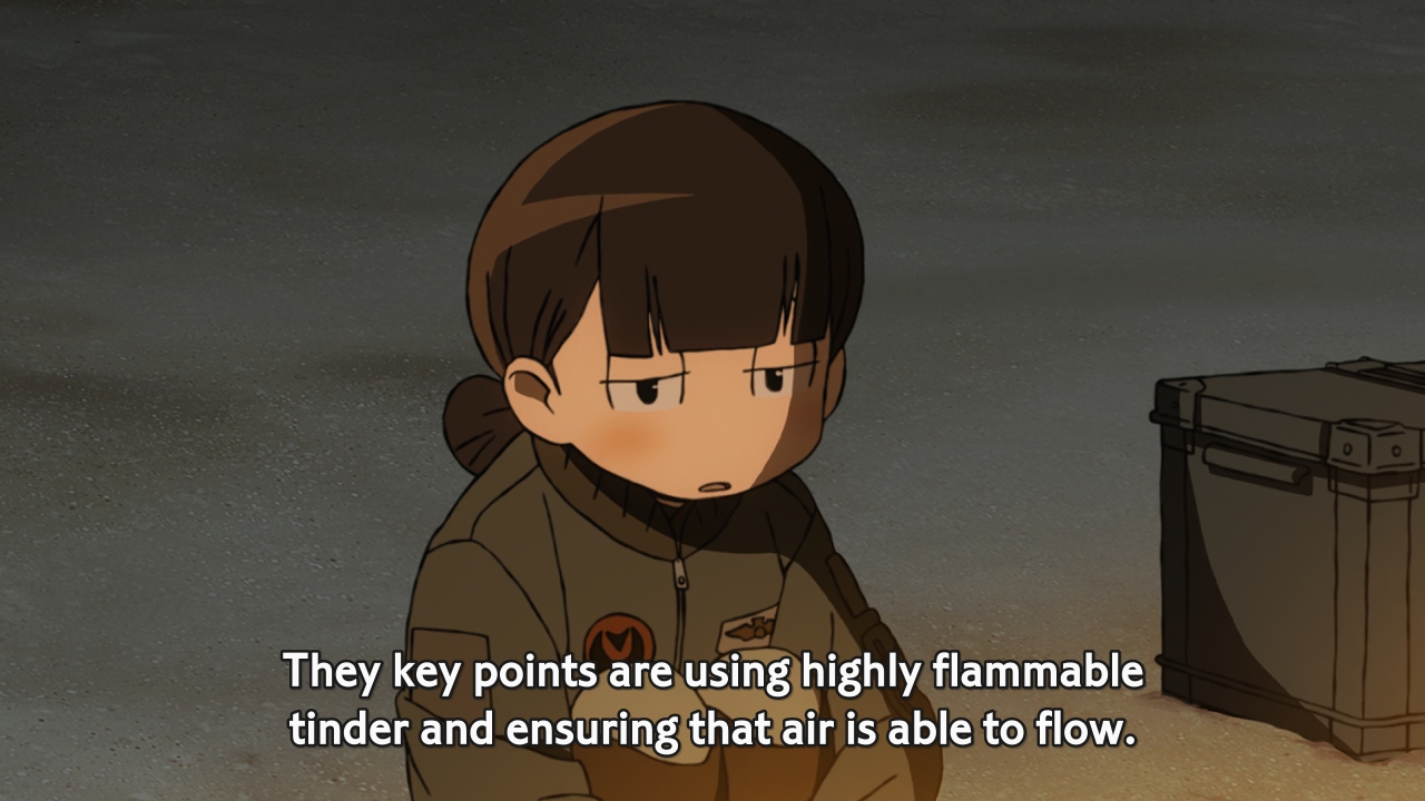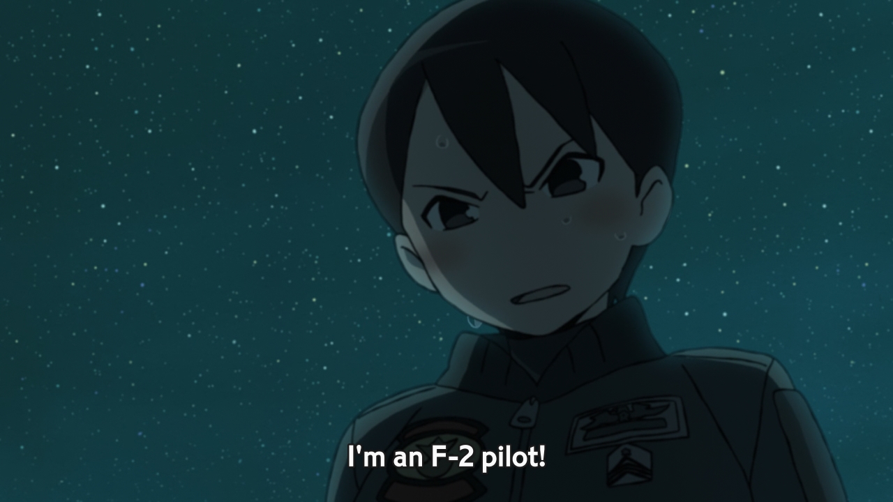 In this week’s episode, the girls are forced to work together in order to survive being stranded on an island and return home to base. Why? In case they ever get shot down, I guess. But what’s the big deal, right? Can’t the girls just hop inside their dragons and fly home? Not so fast, my friends. If it was that simple, it wouldn’t be a test. For some odd reason, the OTFs refuse to take flight, and our heroines have only seven days to figure out why. If they screw this up, they might even get kicked out of the air force. To compound matters, they are given three days worth of rations, but the fat(test) dragon proceeds to eat them all in one go. Hisone tries her best to rally her team, but she’s got a crybaby in one corner, and Ms. Lazybones in another. Worst of all, Eru continues to be self-centered. She starts creating a raft which would carry her back to base, but obviously, big-ass dragons wouldn’t fit on a raft. She doesn’t care, though. She only wants to be an F-2 pilot, not necessarily an OTF pilot.
