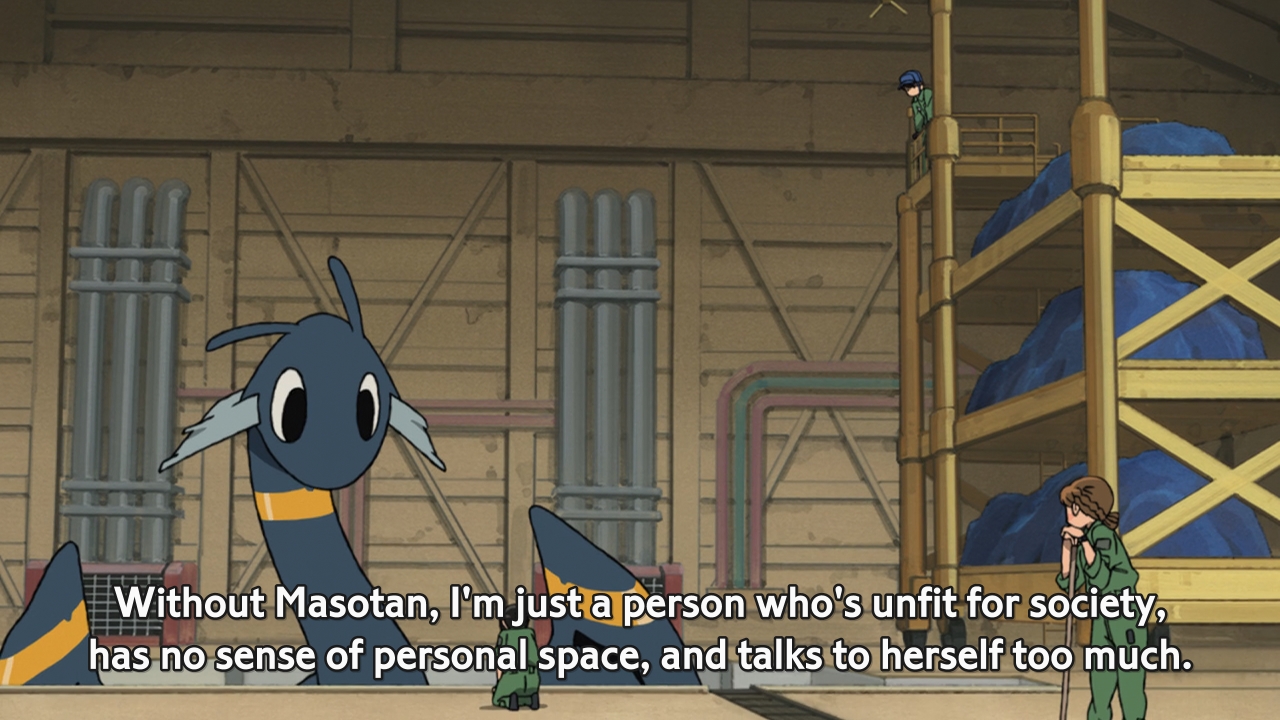 Interestingly enough, our dragon pilots are hand-picked precisely because they all have issues. Although they were all reluctant to become OTF pilots, the girls no longer want to be separated from their dragons. Minus Eru, of course; at the moment, she couldn’t care less as long as she gets to be a pilot some place else. The story here is written by Mari Okada, the same woman who penned melodramas such as Kiznaiver, so we’re not really treading any new ground here. Rather, we should actually commend her for keeping the melodrama dialed down compared to the rest of her oeuvre. So far, Hisone to Maso-tan hasn’t been too on-the-nose with its characters emotional problems, a major issue that tended to plague Mari Okada’s previous works. There’s still time for this anime to devolve into an emotional mess, but I hope it never goes too far in that direction. These poor girls don’t even have noses. They shouldn’t have to deal with typical Mari Okada melodrama as well.