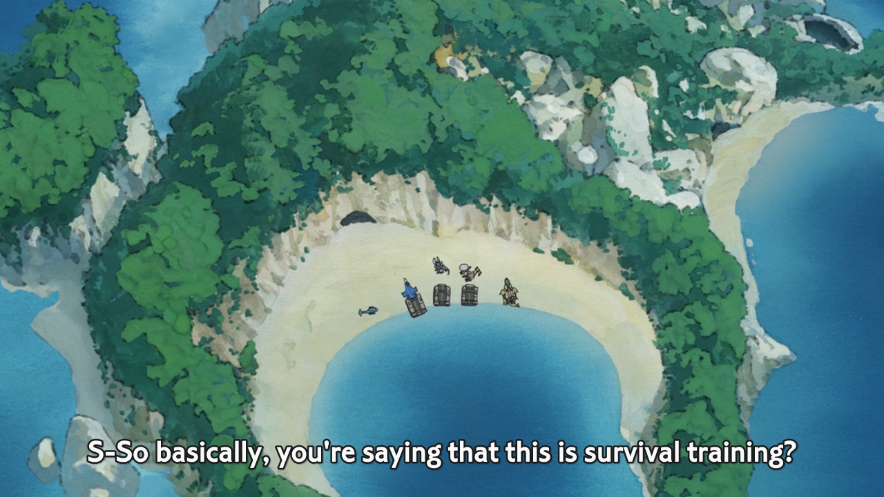 Anyways, Hisone eventually stumbles upon a shrine on the island, which also conveniently doubles as a fresh water source. Mayumi also pulls through and finds at least one shriveled-up potato for the girls to eat. Last but not least, Liliko knows all the ins and outs to creating fire (and apparently rainmaking as well). These three then agree that they should let the dragons have their fun before eventually convincing them to fly home. After all, they will eventually get hungry, so the dragons will want to return home. Food is always a prime motivator, and these three girls understand at least that much about their OTF buddies. Y’see, they actually love their dragons unlike a certain someone. In the end, it always comes down to teamwork. Teamwork is always the key to every solution in anime. Even Nao is pulling her weight in a unique, Astolfo-inspired sort of way. Unfortunately, Eru continues to insist on being the lone wolf. Obviously, the story won’t be able to move forward without her. Nevertheless, our little tropical island escapade looks to be a two-parter, so we’ll have to wait till next week to find out how the Eru situation resolves itself.