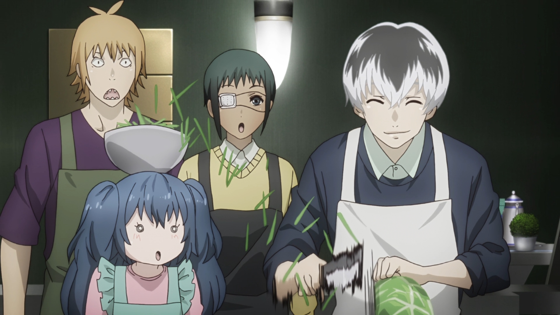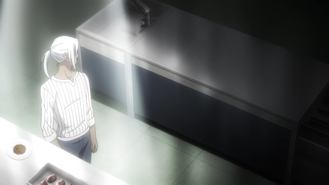 Welcome to the money-saving episode. Lots of talking this week, which I don’t necessarily mind. There are, however, moments, in which nothing is animated. Now that is going a little too far. Anyways, Hinami ends up being spared from death at Haise’s request; she’s currently imprisoned, and this might lead to tension between Haise and Akira later on. The entire Quinx Squad receives a promotion for their efforts, so Haise throws a party afterwards for everyone including Akira and Arima. Haise gets Ken’s old mask in the mail, so he revisits Touka’s cafe. Memories of his past life are slowly starting to leak out into his current life, but nothing comes of this just yet. He tries looking into Ken’s past, but he finds almost nothing. Right before the episode ends, we see Tsukiyama in great pain, but I’m getting kinda tired of the story drip-feeding us info about this guy. There are also character-building moments with the lesser Quinx Squd members, but I still don’t care about any of them. The status quo hasn’t changed much. For instance, Urie continues to be a jackass even if he begrudgingly admits that Mutsuki had really helped him out in their last mission. Speaking of which, Mutsuki is supposed to be a guy, right? Sometimes, I wonder…