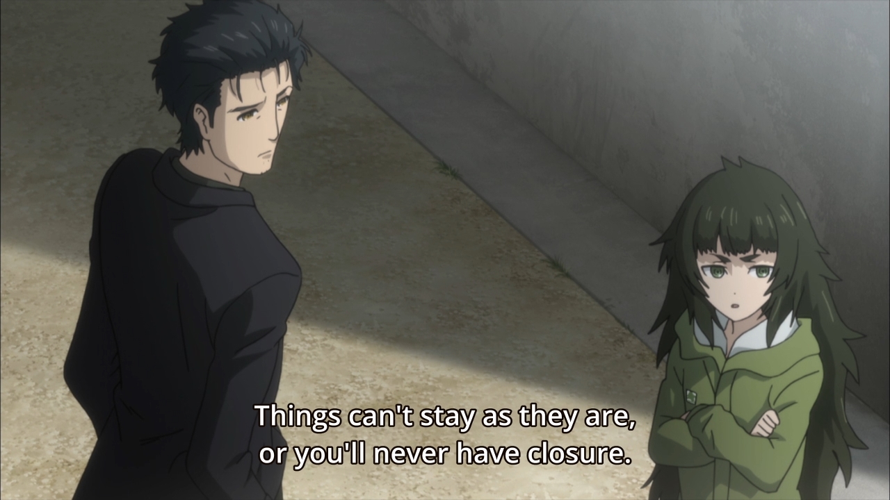 — Personally, I think the need for closure is a myth, but let’s not get into that debate. I do agree that Rintaro needs to decide whether or not to continue engaging Amadeus. He’s going to have to, anyways. After all, isn’t that the central premise of this spinoff? So in essence, we’re just delaying the inevitable because this Kagari subplot has come out of nowhere.