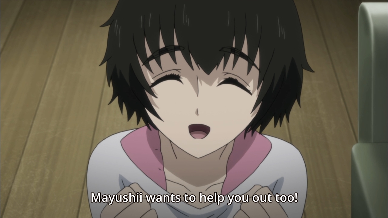 — The episode literally gives us a clip of Mayuri giggling for three or four seconds straight.