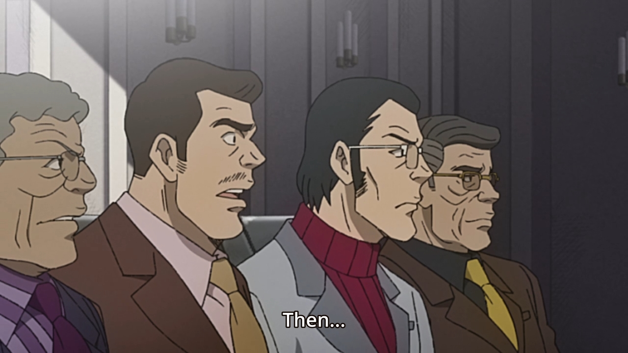 — Mikio accuses Yukiko of stealing the company from him. Fair enough. But how will he wrest control back from her by winning a boxing tournament? Maybe he’s a genius. Maybe he’s the brains behind his revolutionary Gear, and when he wins, the board members will be so impressed that they vote him in as the company’s next president. Still seems to weird to me, however, that Mikio would put his own body on the line to take this gamble, though. He could’ve recruited any fighter to promote his Gear.