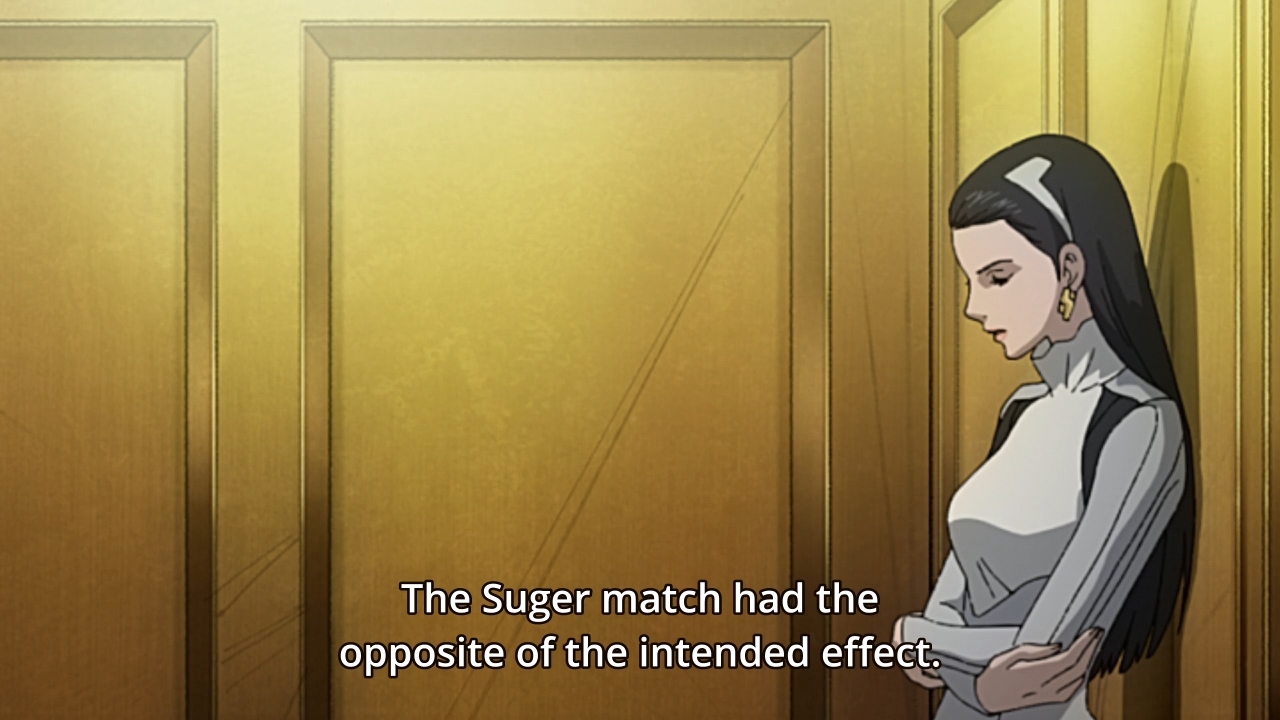 — Turns out Yukiko helped set up Mikio’s match against Sugar, but she didn’t actually want him to win. She never expected his Gear to be so effective, but he now actually poses a credible threat to Yuri if things continue at this rate. Interesting. I wonder if keeping Mikio out was a way to resolve a potential power struggle between the two siblings.