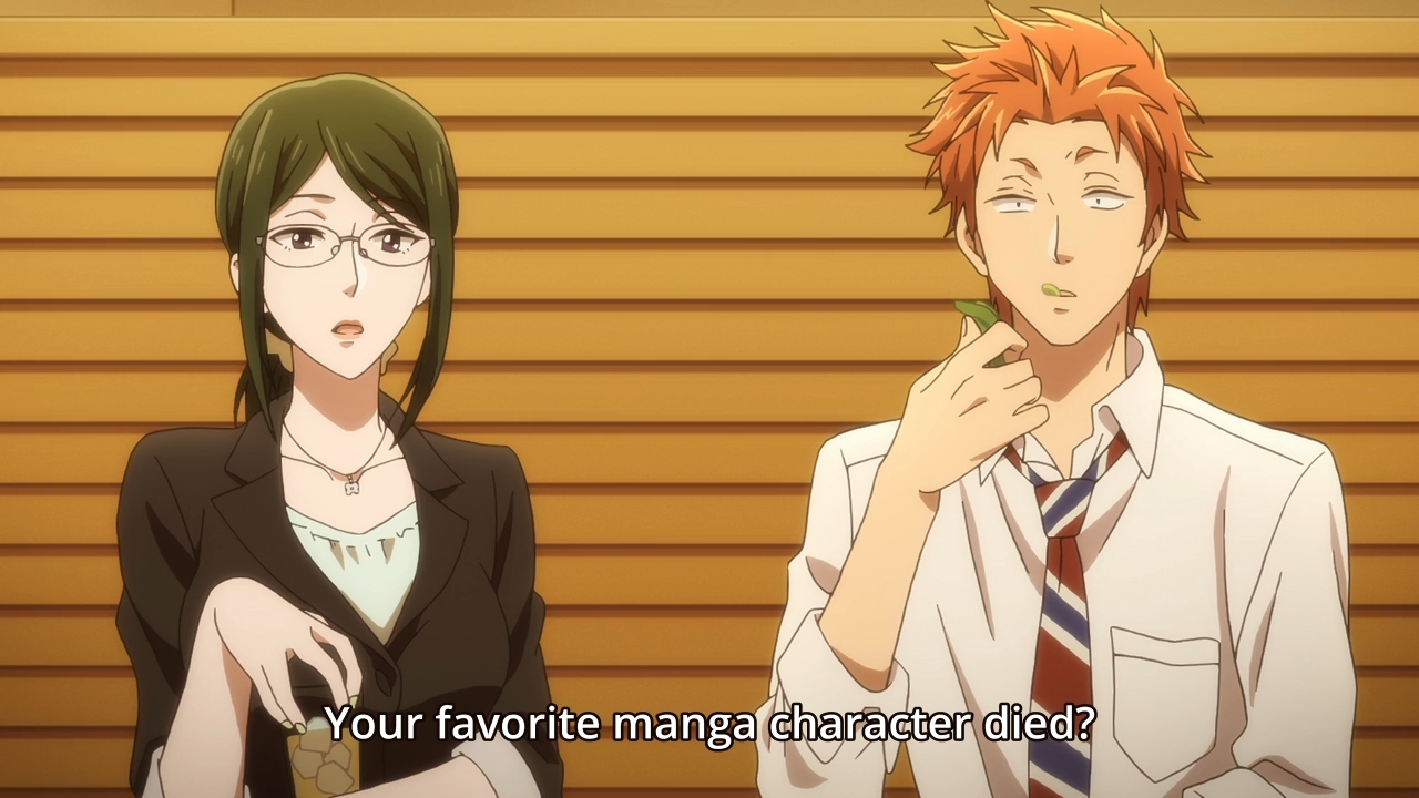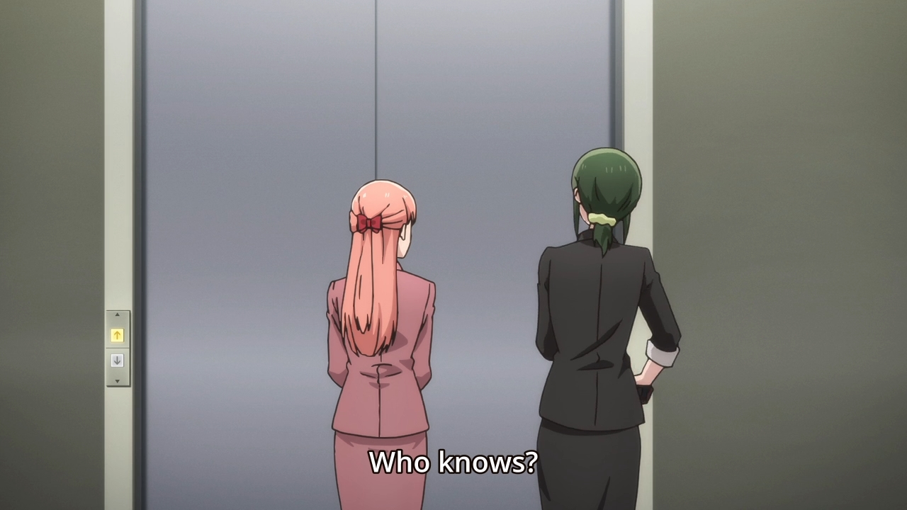 — This must be such a cheap anime to make. They’ve been waiting for that elevator for minutes. Most scenes simply come down to two characters standing or sitting still in one location and having a conversation.
