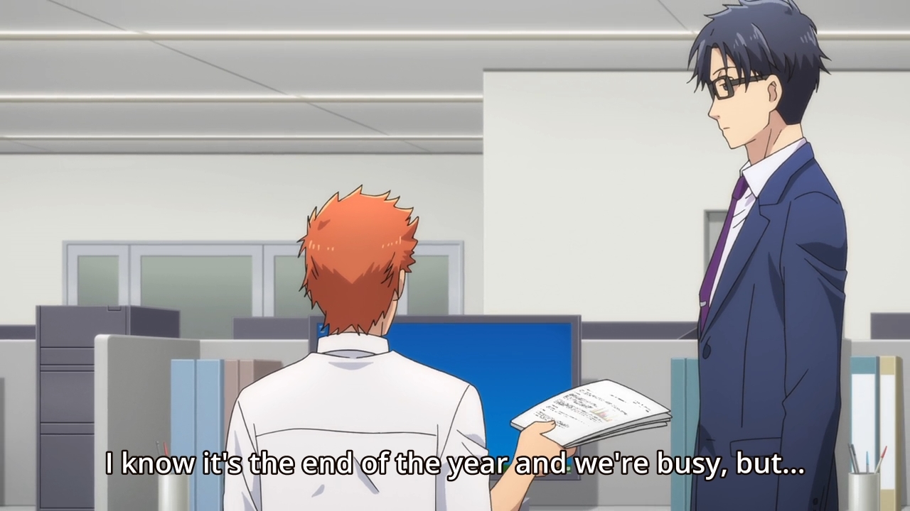 — This conversation is so boring. They were talking about how cold it is, and now it’s all about how Nao doesn’t have a girlfriend. Who cares? Nevertheless, Hirotaka makes yet another gaming analogy. I can’t believe Wotakoi got this time slot. It’s such an aimless show with half-assed jokes. It’s not even all that well-directed or animated. Just comparing everything to games doesn’t make something funny.