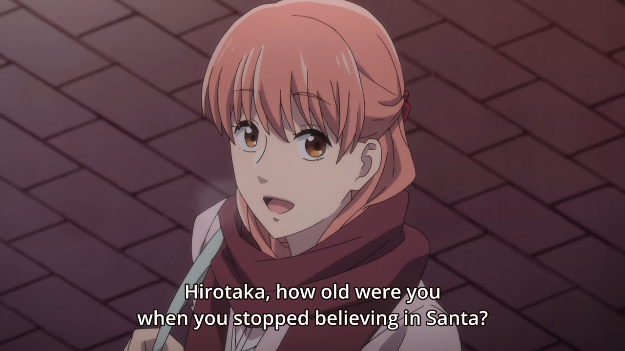 — We get another reminder that Taro is a terrible boyfriend. Nevertheless, Hanako forces herself to wear a smile. That’s pretty pathetic. Meanwhile, Narumi has no clue if she’s doing anything with Hirotaka for Christmas.