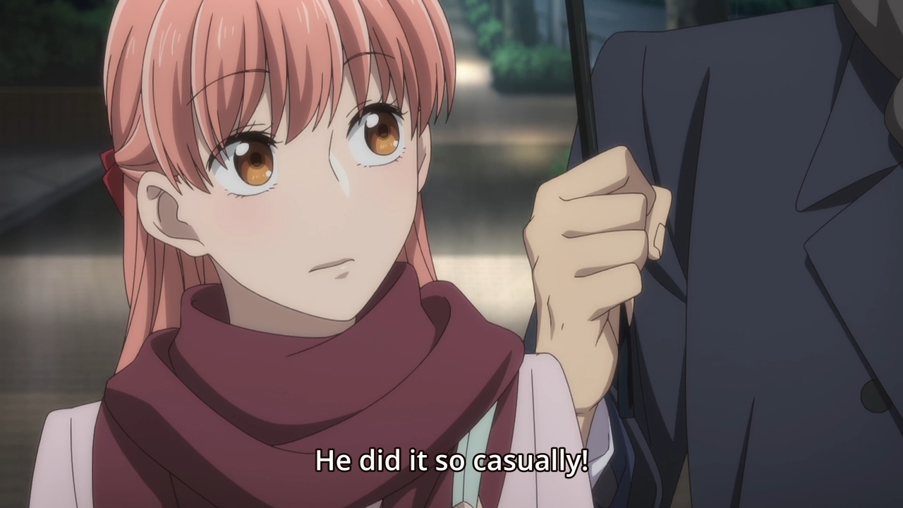 — He still casually swaps places with Narumi. Maybe it was to keep her dry, maybe it was to keep his games dry. Maybe both. Either way, she’s impressed, but impressed enough to like him back? Who knows? And yeah, I still don’t feel like she actually likes likes him, y’know? The way their relationship started, I kinda feel like she’s only dating him out of convenience (they work together, hang out together, have the same interests, so on and so forth). He has to gradually make her fall in love with him.