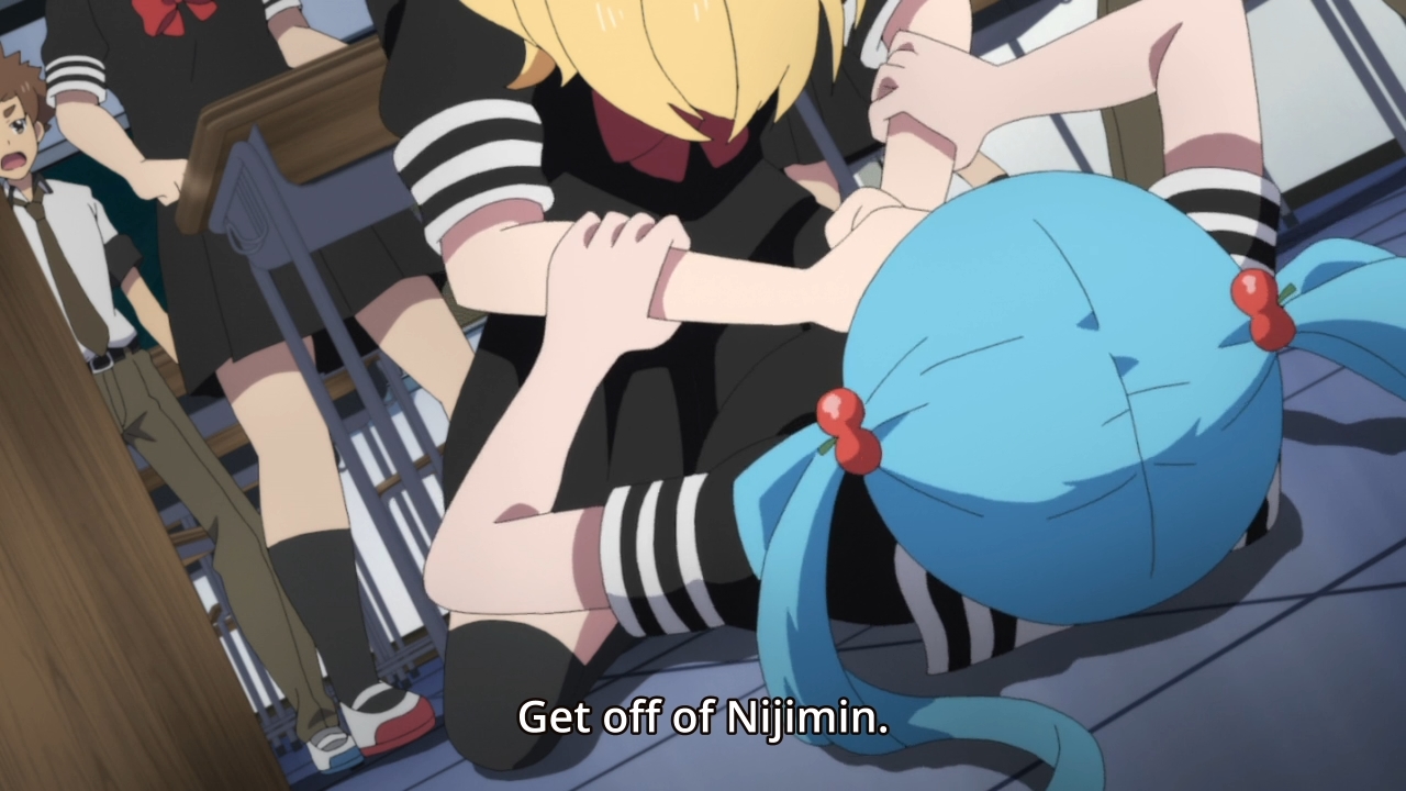 — Wait, maybe the animation just sucks, ’cause Nijimi now has no eyes.