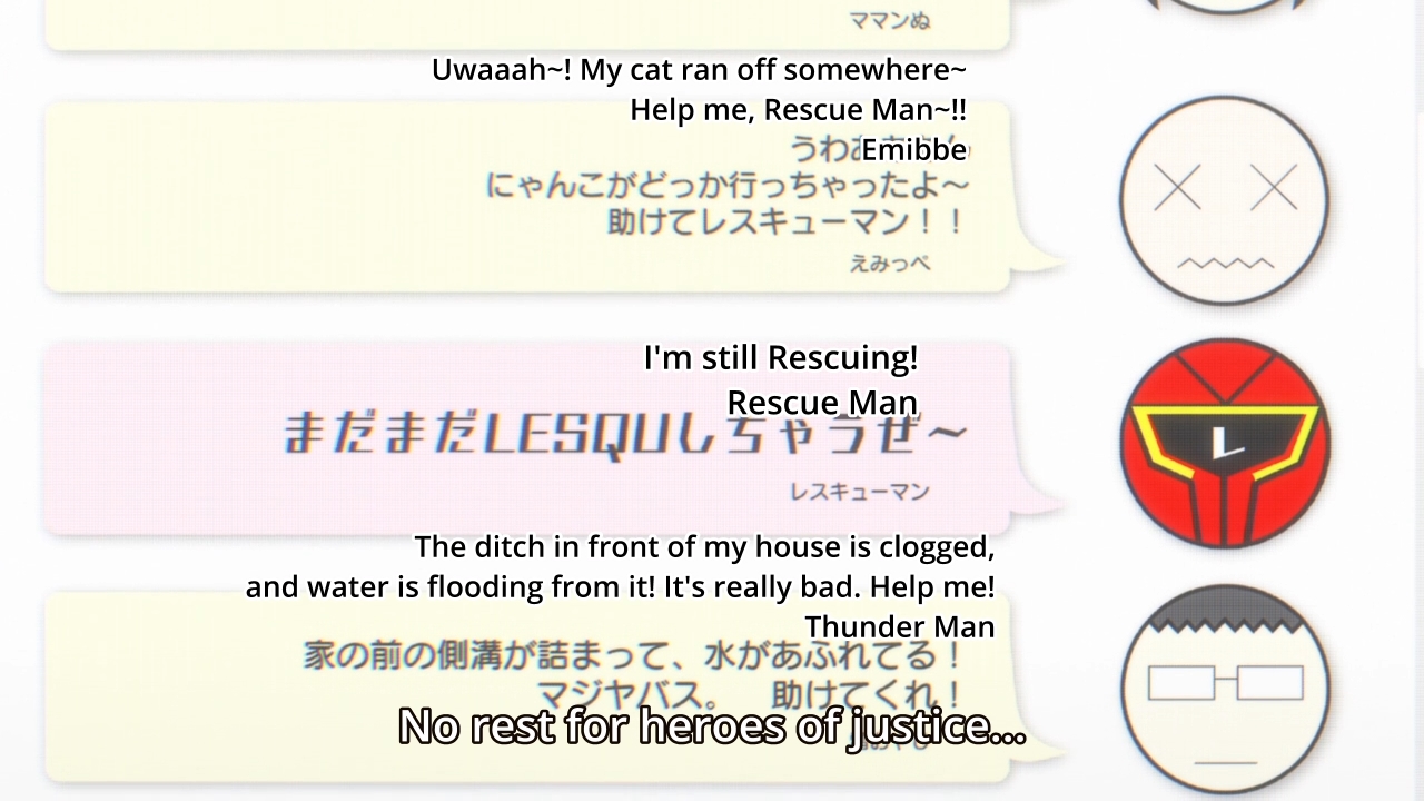— Speaking of Kotaro’s side missions, he’s been masquerading as Rescue Man. He’s supposed to be enjoying this hot pot with the rest of his friends, but duty calls. People can make odd requests on the internet, and before they know it, Rescue Man will be there for the, uh, rescue. There are no exceptions! Even if you’re just an NPC, you too will be helped!