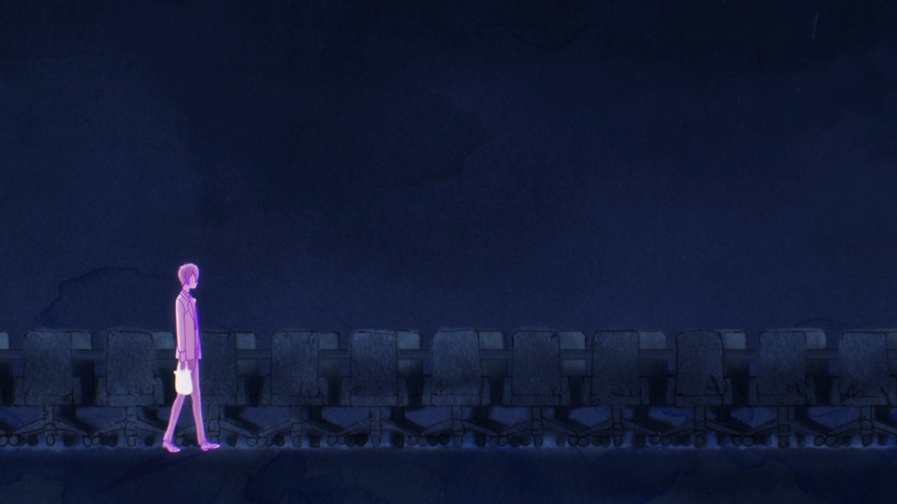 — Meanwhile, midway through this fruitless conversation with Mu, Ritsu suddenly have visions of his real world counterpart. It’s all kinda vague, but my theory for now is that maybe he’s responsible for this world. Maybe he’s even responsible for Mu. Eh, I dunno… something about his real world counterpart claiming that happiness is just a state of mind just makes me think that maybe this is all his fault.