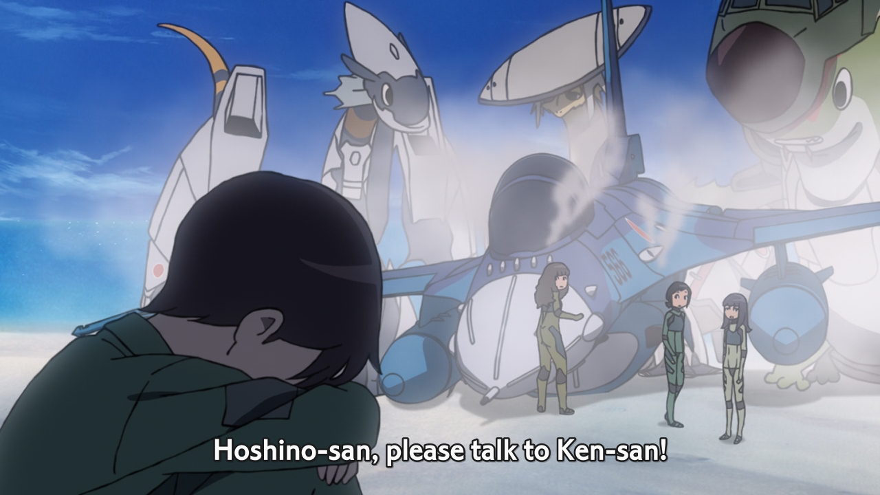 I didn’t care too much for the episode. The resolution to Eru’s conflict feels too simple and straightforward. Like, I get what the show is trying to accomplish. She faces an upward hill all because of her gender, and it’s unfair. It’s actually kinda annoying how the girls often have to shut up and deal with a lot of their mistreatment. For instance, that pervy designer is infuriating. He constantly makes Hisone feel uncomfortable, but shhh, it’s okay because it’s supposed to be humor! Anyways, my point is that the story devotes so little time to Eru’s backstory, and as a result, her bitterness and anguish still remain relatively underdeveloped. I don’t feel all that connected to the character even though I should sympathize with her. This is then followed by by a predictable sequence of events in which Norma, Eru’s dragon, nearly dies as a consequence of trying to save her life but still forcing itself to hide its true form. The girl eventually and predictably swallows her pride within a matter of minutes and accepts her partner. The story beats here are too generic for its shiny, dragon-themed skin to make a difference. The story simply wants its audience to accept the happy ending, but I don’t feel as though everything has been resolved. For instance, it’s not as though Eru has really addressed her feelings of resentment — resentment not towards Norma, but the gender discrimination that they all face. After all, this dark cloud is what made her reject her dragon in the first place. I feel as though it’s being swept under the rug just because she now openly loves Norma.