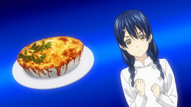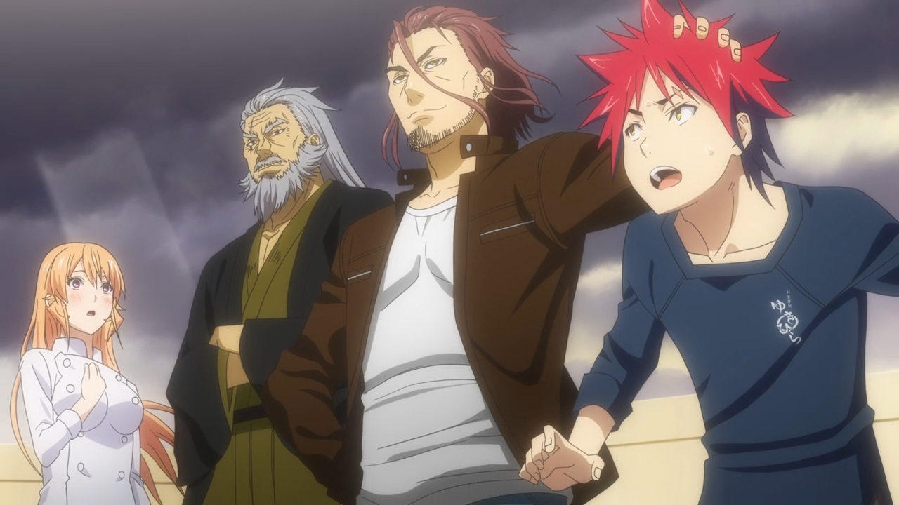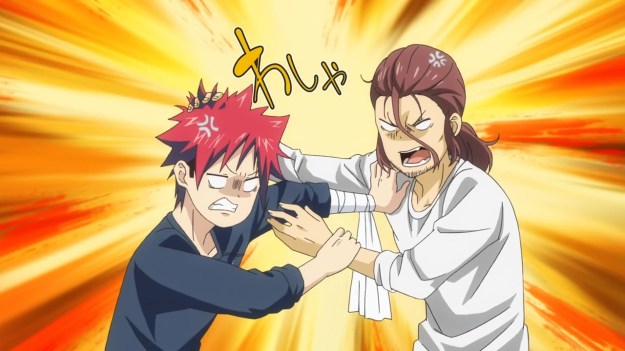 Basically, most of Yukihira’s friends got expelled. In order to save them, the sole survivors will have to challenge the Elite 10 for their seats in, well, a shokugeki. Of course, Azami isn’t going to just agree to this. After all, there’s nothing in it for him. That’s when Yukihira’s dad suddenly shows up out of nowhere and saves the day. He can do this, because both Azami and Erina oddly have a crush on him. I couldn’t help but laugh at how the anime tried to make Saiba look like such a badass. His long flowing hair, his not-too-wild stubble, and his sweet blouson. But I digress. Saiba proposes that they all compete in a Regiment de Cuisine. Ooh, that sounds fancy! What is it? It’s actually just a team shokugeki. So what is Saiba offering to get Azami to agree to the challenge? Himself, of course. If Yukihira’s team loses, then he will close down his diner and join Central. It’s as simple as that.