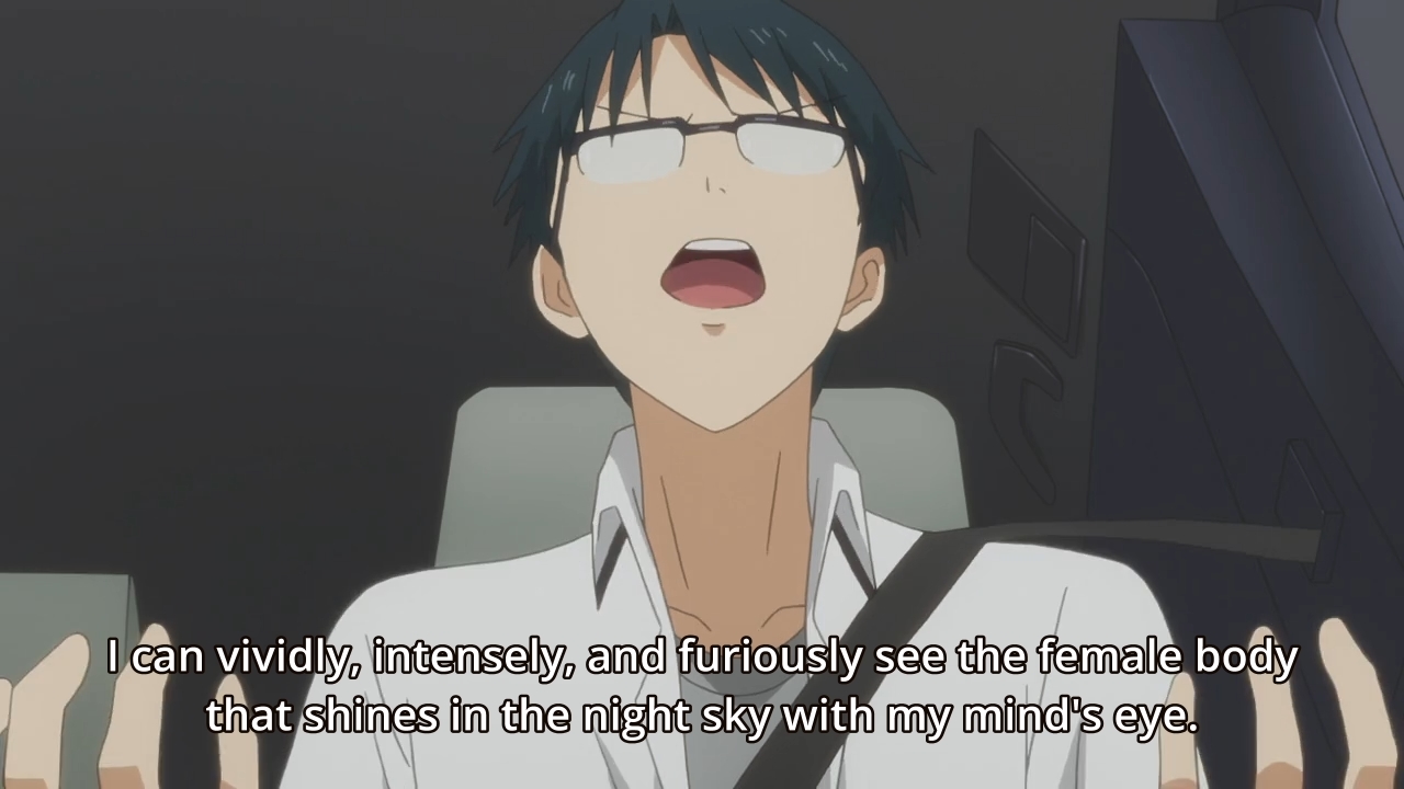 — We’re going camping this week, because they want to take pictures of a clear, night sky. And something, something, naked woman. Honestly, Pin-senpai doesn’t even feel like a real person anymore. I hate to admit it, but even Dog-kun has surpassed him.