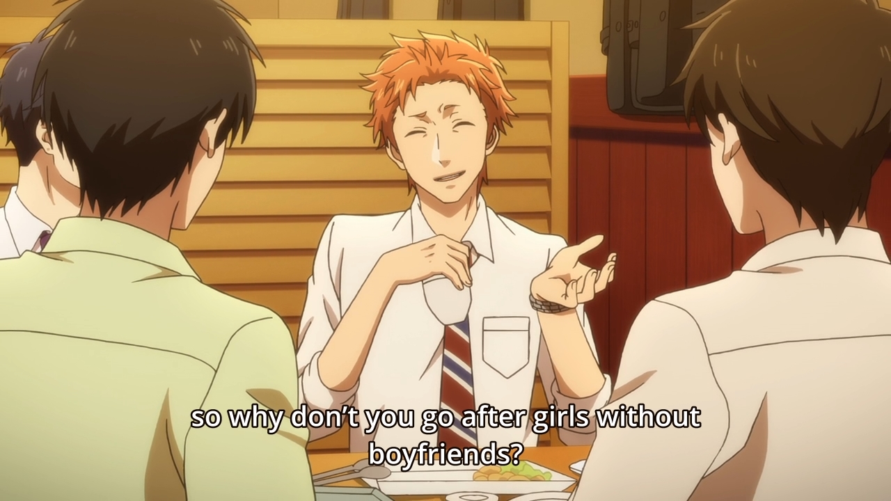 — Taro eventually tells his juniors off, but eh… his argument is more that they shouldn’t talk about taken girls like that.