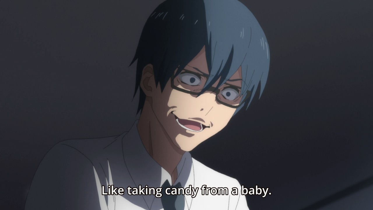 — And Aya saw everything. If she truly cares about people, then she’d use her power to stop him. Does she have to kill him? Not necessarily, but hey, if she tries to stop him and he somehow gets seriously hurt, oh well. After all, he’s a waste of oxygen. He provides no value to the world, and he just committed his first act of murder. But somehow, I doubt Aya will have the guts to do anything to her brother. Even when Sarina tried to kill Tsuyuno, Aya couldn’t help but save the girl at the last minute. If you ask me, that’s kinda pathetic.