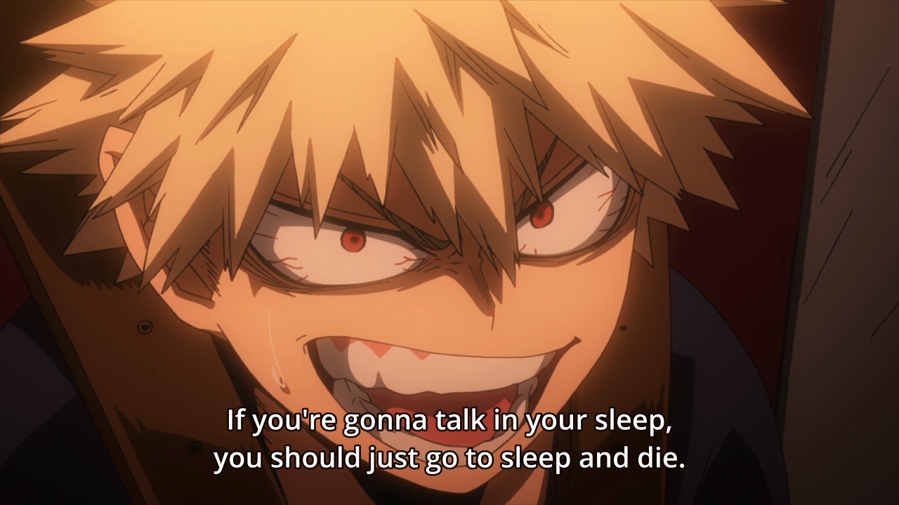 His constant self effacing attitude is just too much. Come on you’ve accomplished so much, it’s time to stop this, but you’ve pretty muchexpressed these sentiments already. Bakugo is an ass but i’d rather he have more screen time than deku