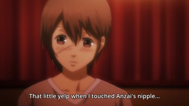 — Unfortunately for our lovey-dovey couple, both doctors will be monitoring their relationship every step of the way. Nope, the surveillance is apparently not just limited to sex. They want to see if Anzai can control himself even during a makeout session.