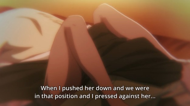 hey, as cringey as some of that shit was, at least there was consent between BOTH parties this time around…….let’s ignore the fact that there were officials keeping them under supervision next door the whole time. I guess with the last 4 eps of Devil’s who occasionally cross the line, the main takeaway is that controlling devil transformations is pretty much like learning how to hold your nut during intercourse…..fascinating