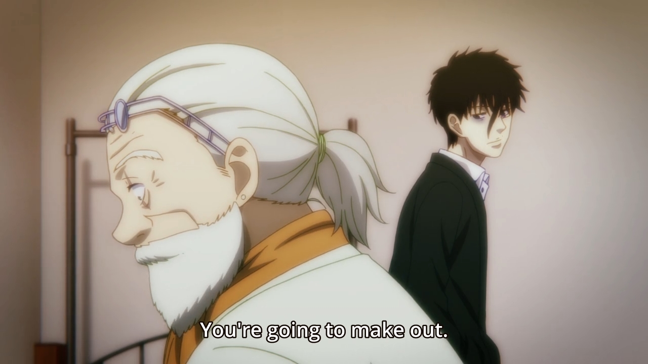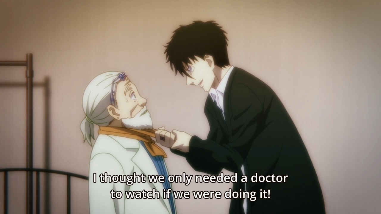 — Unfortunately for our lovey-dovey couple, both doctors will be monitoring their relationship every step of the way. Nope, the surveillance is apparently not just limited to sex. They want to see if Anzai can control himself even during a makeout session.