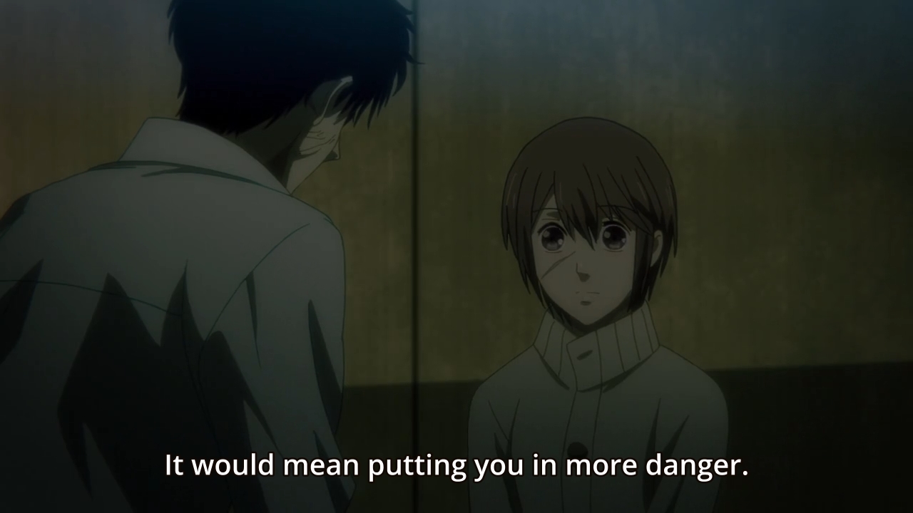 — In the after credits scene, Sako rushes back to ONLO so that she can tell her husband, i.e. Anzai’s father, all about their boy. Aw, what a nice family moment. Sure, the guy is in chains but look, isn’t he just as adorable as his kid! Ugh.