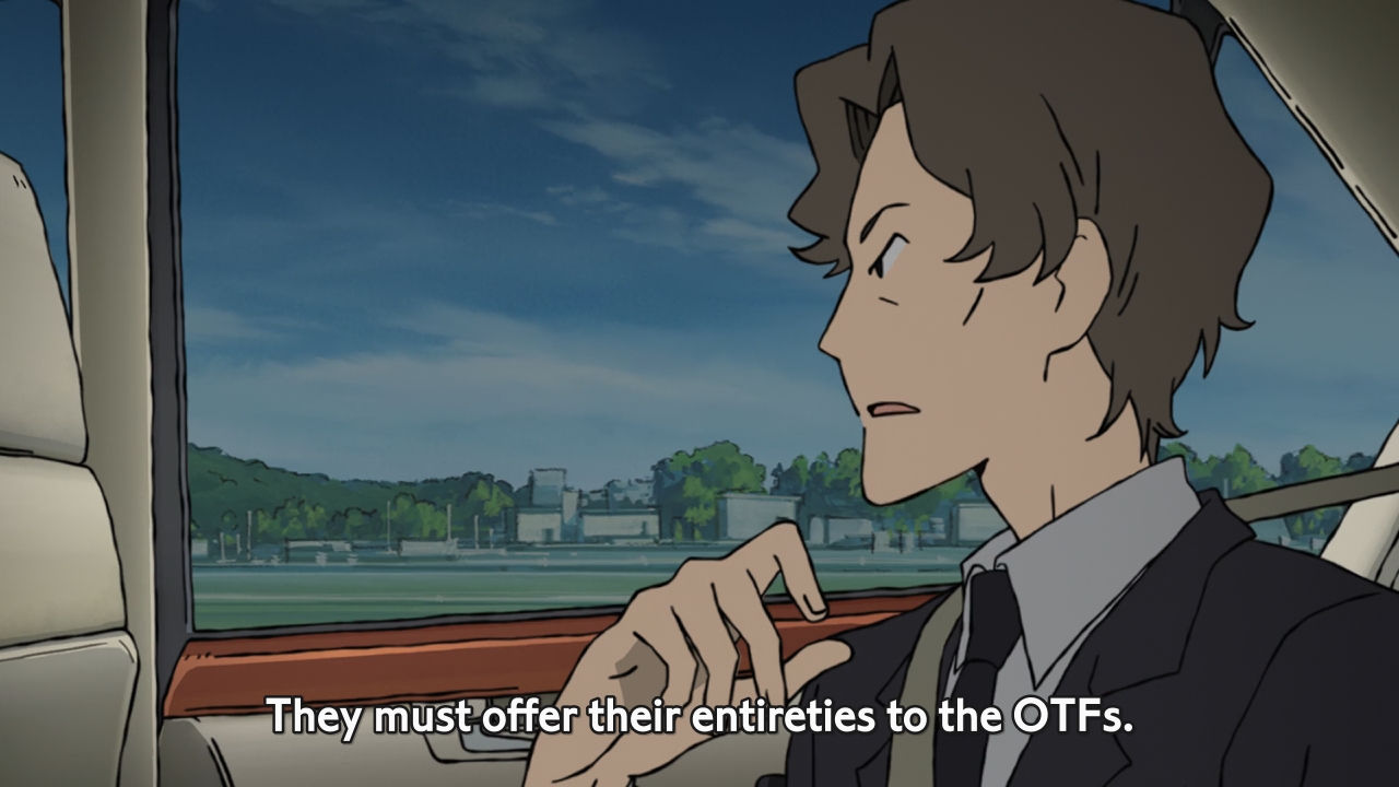 Apparently, something big is supposed to happen once these poor girls become emotionally dependent upon their OTFs. Yeah, it’s as bad as it sounds. Iiboshi’s latest scheme is to crush the D-Pilots’ hearts. For instance, Haruto is instructed to make Hisone fall in love with him, then reject her completely. The idea here is that the resulting heartbreak will make the girl give up on love, thereby tying her heart even closer to Masotan. That’s hilariously unethical, but supposedly, the future of the nation depends on the success of the Ritual… whatever it is. I doubt Haruto can pull this off. He’s not that heartless… but we’ll see. One big problem is that Haruto might end up falling in love with Hisone, so it makes even less sense for him to hurt her. Plus, Hisone is one of those typical clueless anime characters. You know what I’m talking about. These characters are so blissfully unaware of matters concerning the heart that you can’t even imagine them falling in love. A guy asks Hisone out to the movies, and not once does she think, “Gee, I wonder why he wants to hang out with me.”