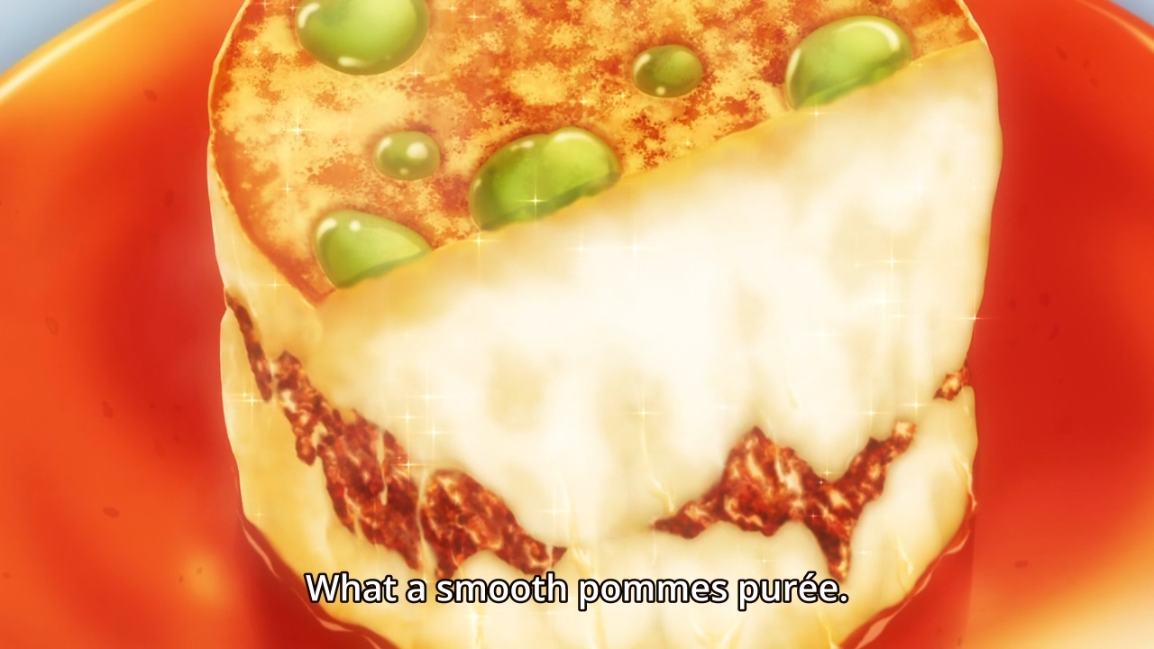 Meanwhile, Team Saiba offers up this deconstructed version of hachis parmentier, so I guess it deserves to win for its innovation. Of course, we can’t really judge without having a taste ourselves. In the end, the results of this practice match isn’t all that important, really. Their newfound teamwork isn’t even that important either. What’s important is that Erina accepts that it’s okay to have fun cooking. For all the vaunted talk about teamwork, the key to their victory is Erina.