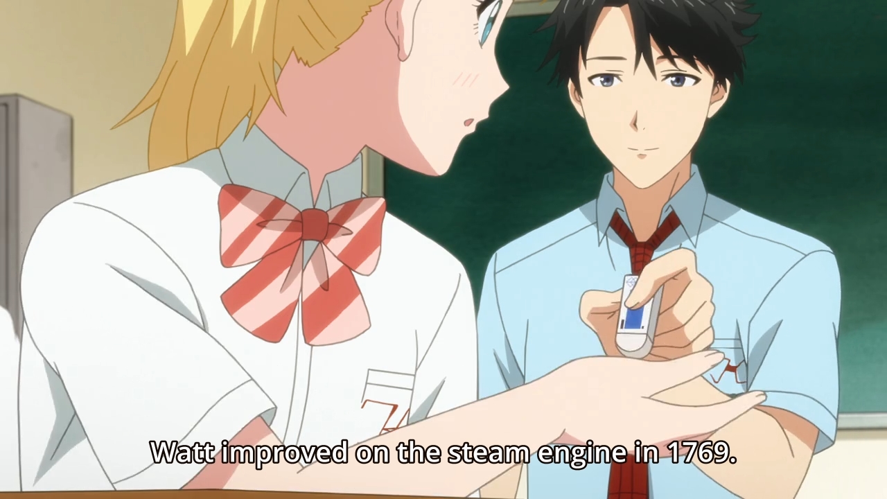 — Before we know it, summer vacation is over, and the kids find themselves back at school. Teresa is obviously nervous around Mitsuyoshi now that she’s cognizant of her own feelings for him, but unlike most heroine, she doesn’t turn into a puddle of blushes and flushed cheeks. Instead, she brims with red-hot samurai spirit! She even decides to greet people in an odd way. She does it repeatedly throughout the day. I kinda like this. I find it amusing and a nice change of pace. It beats the alternative.