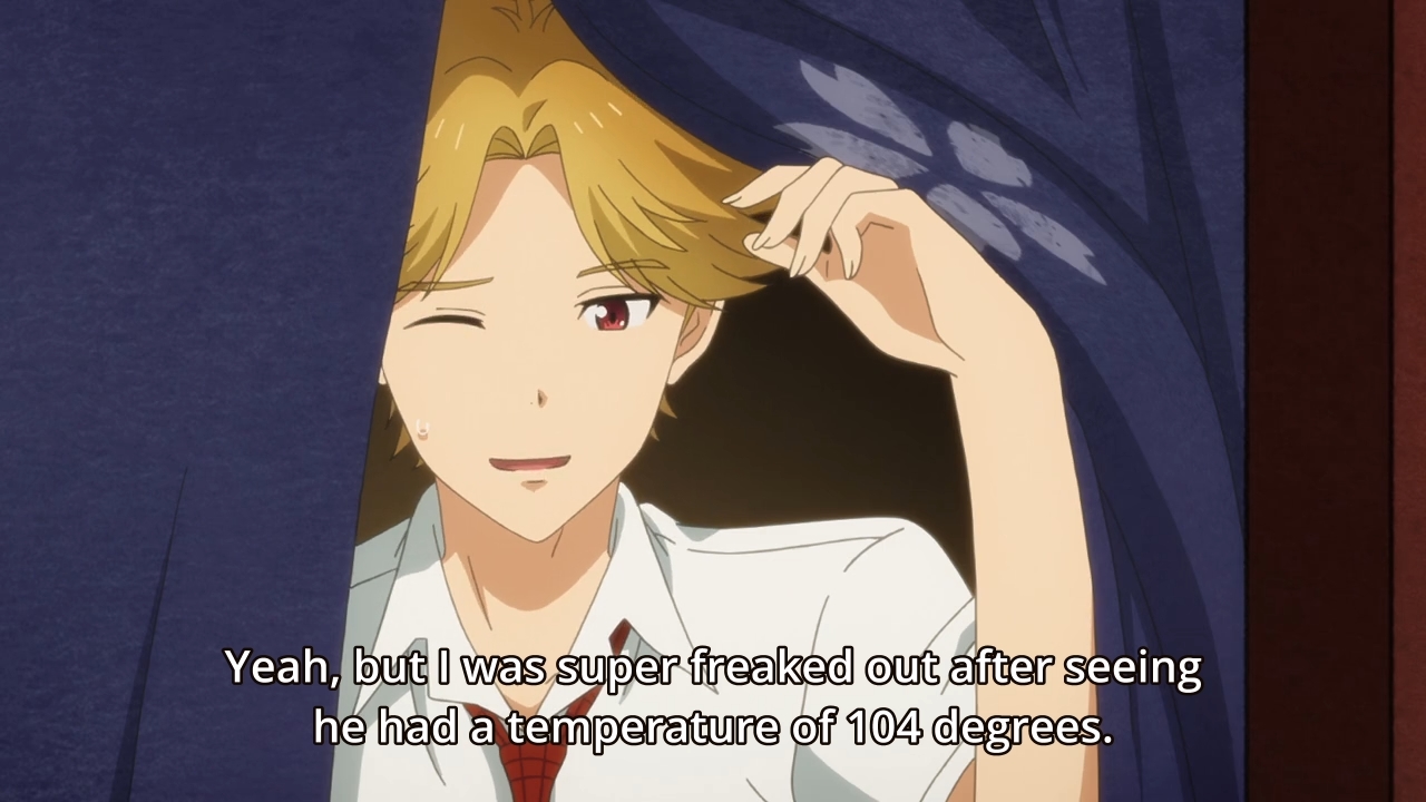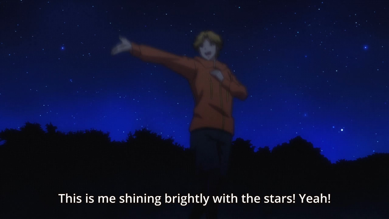 — Luckily, both Hinako and Pin-senpai actually snapped pictures of actual stars. When it’s finally Mitsuyoshi’s turn to share his picture, I half-expected to see him offer up the photo of Teresa gazing up at the night sky. Unfortunately, he ends up passing out from a high fever instead. That’s a little dramatic, isn’t it? When’s the last time anyone has ever collapsed from a cold? Maybe he pushed himself to go to school, because he’s trying to hard to be a grown-up, but even then, I still find this to be a bit much.