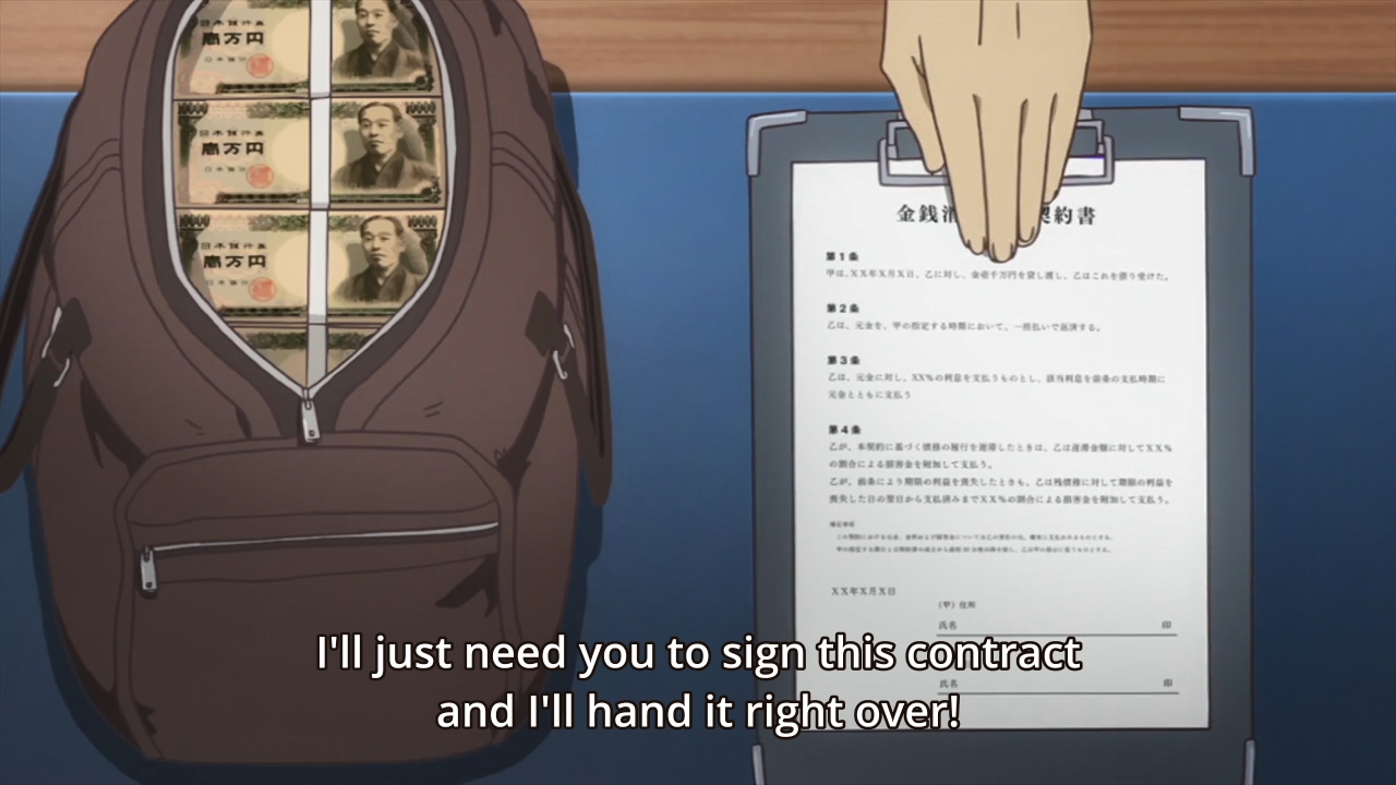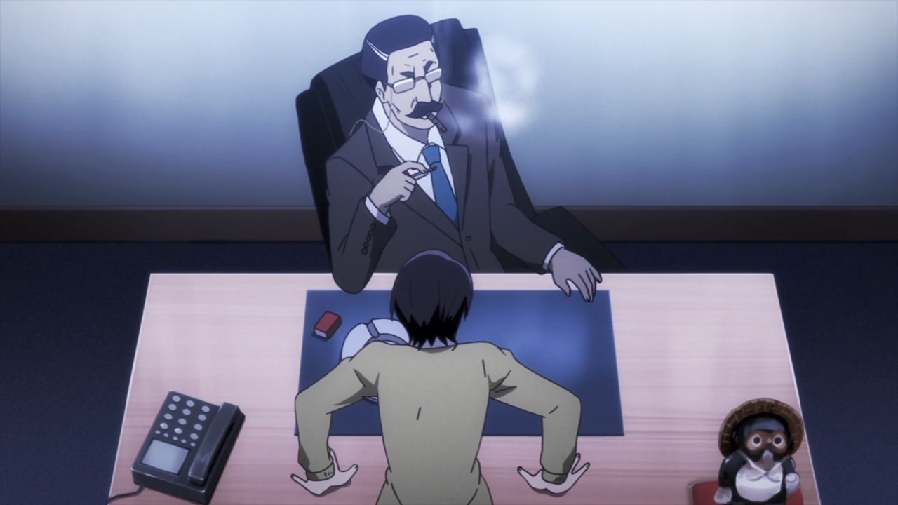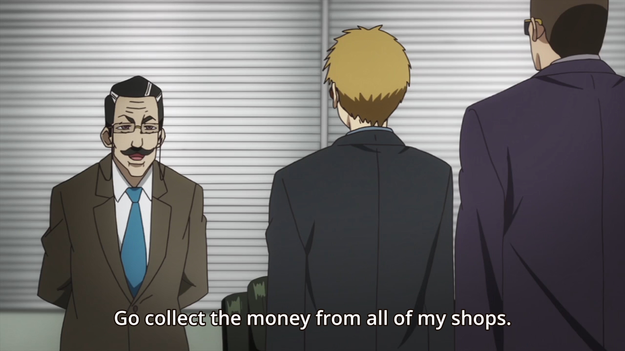 — Yuuga also shows up to Mustachio’s office disguised as a loan shark. He offers up 10 million yen for a loan, but this is obviously just a misdirection. Besides, if you acquire the money via a loan, does that really count as “earning it?”