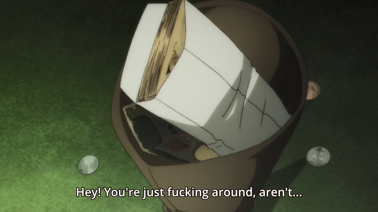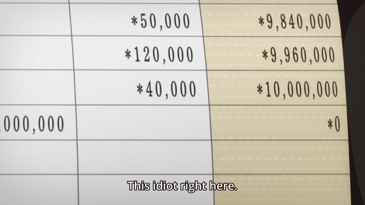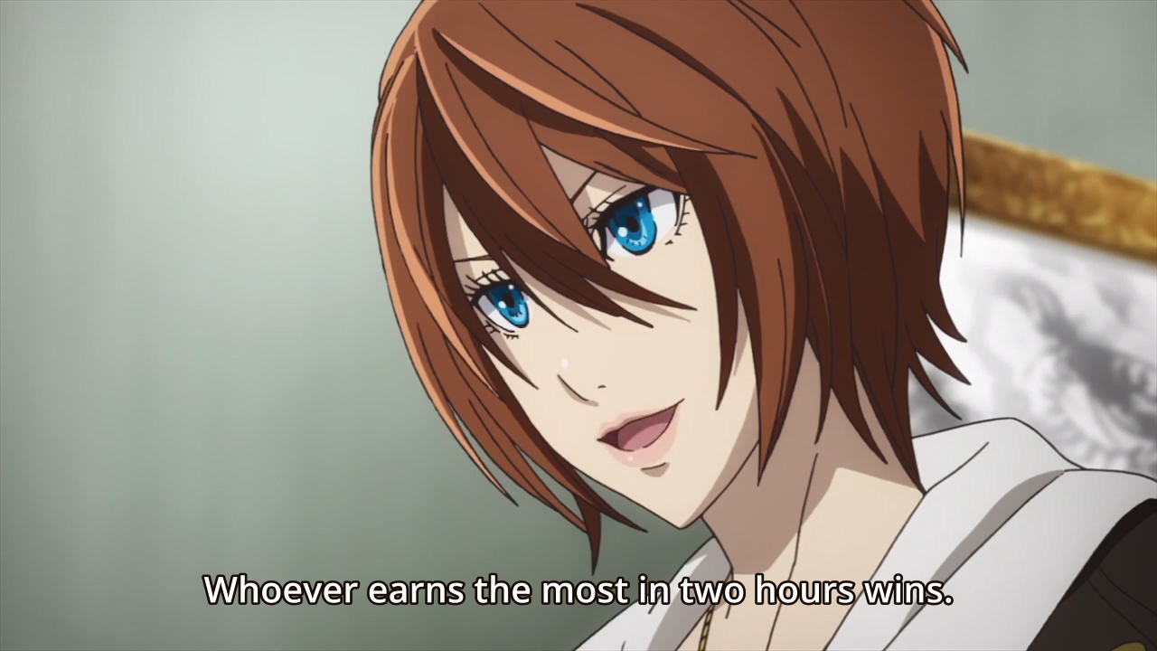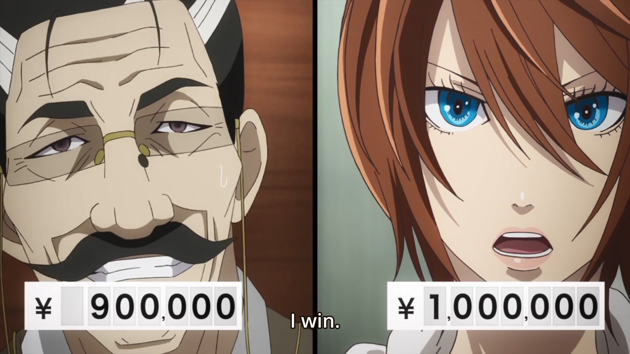 — When Eia returns, Mustachio acts all cocky because he thinks he’s seen through her ruse. She has 1 million yen, but he has 10 million yen. Surely, he’ll win, right?! Again, Eia has plot armor.