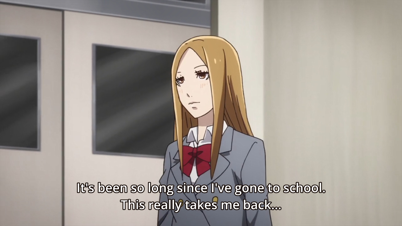 — Meanwhile, Fujiko has also infiltrated the school as a nurse. The real nurse is coincidentally out with a sickness, but this is even more difficult to swallow than Julia masquerading as a student. Wouldn’t one of the faculty members question why there’s a substitute nurse running around?