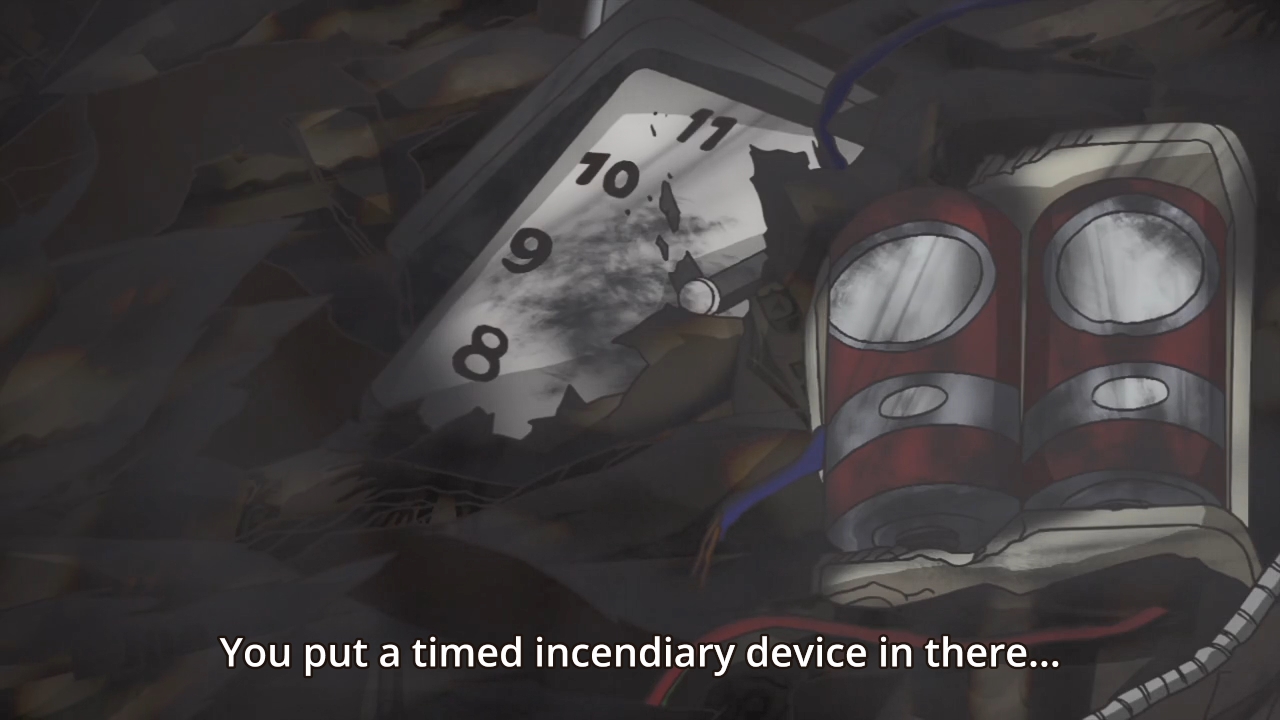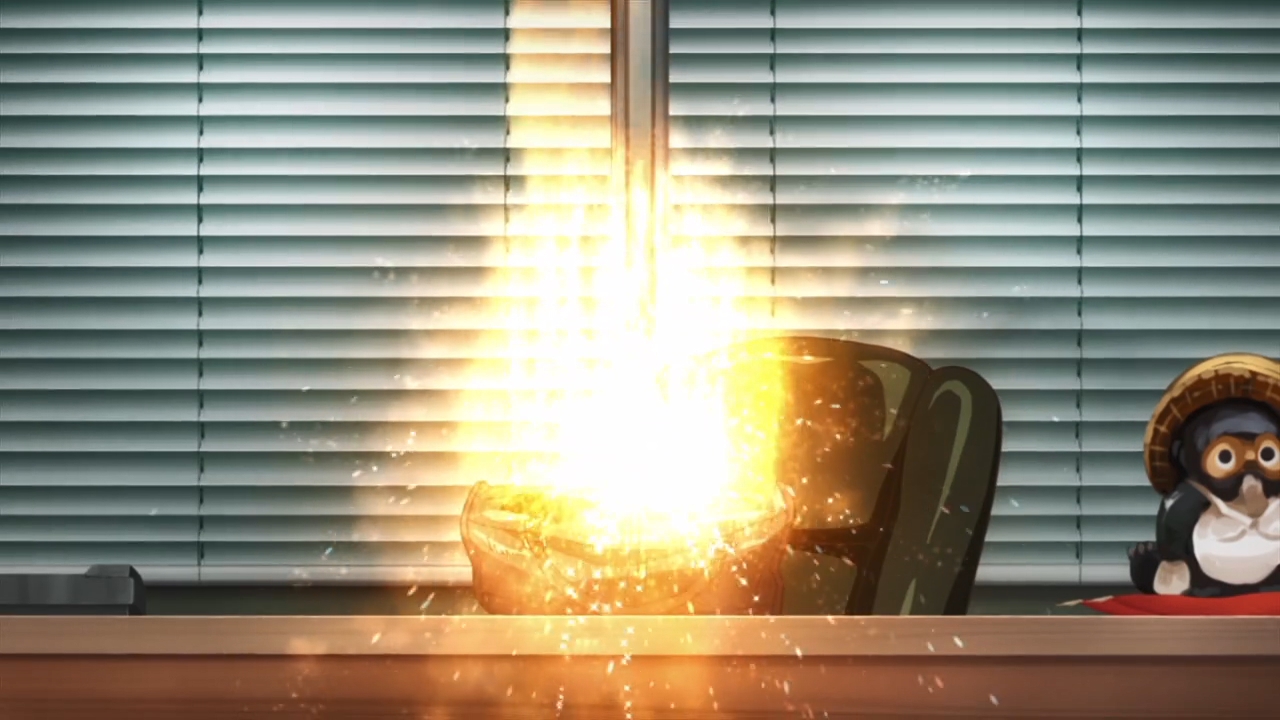 — Mustachio turns around to find that the 10 million yen is suddenly on fire! Oh no! He should’ve checked the bag, ’cause there was actually a bomb in it!