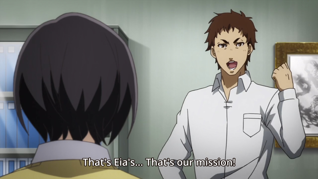 — Eia announces with pride that she intends to free everyone from the whole SCM nonsense. Even Yuuga is proud of her… I thought he wanted to test his limits and all that nonsense, but maybe becoming Fujiko’s slave for a brief second scared him straight.